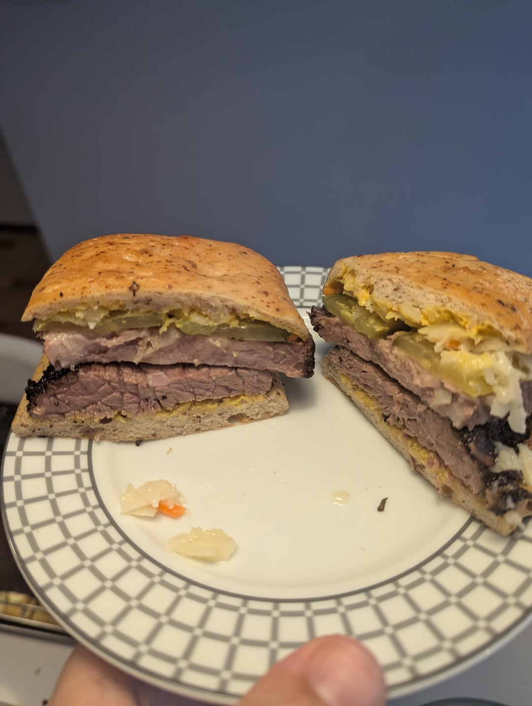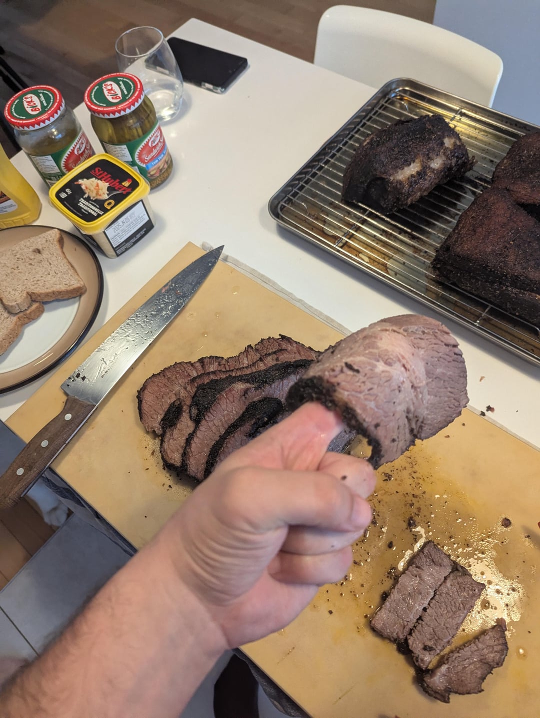 Followed most of Kenji Alt-Lopez's recipe.26H at 155 then dry it, reapply rub and finish in over for 2H at 300.Was definitely my best brisket so far! Can't wait to do some moreby HairyKiwi4 6 Comments Corycovers87 9 months ago Any smoke? StealthCampers 9 months ago That sandwich looks bomb DetroitDaveinDenver 9 months ago 10/10 would eat. EveningResolution768 9 months ago Where did you find a vacuum sealing bag that big? Bloody_Hangnail 9 months ago Do you think finishing on the smoker would be good? Like high heat for 2 hours? lcohenq 9 months ago Lo0kS RaW Put MINe iN the MiCroWavEWrite A CommentYou must be logged in to post a comment.