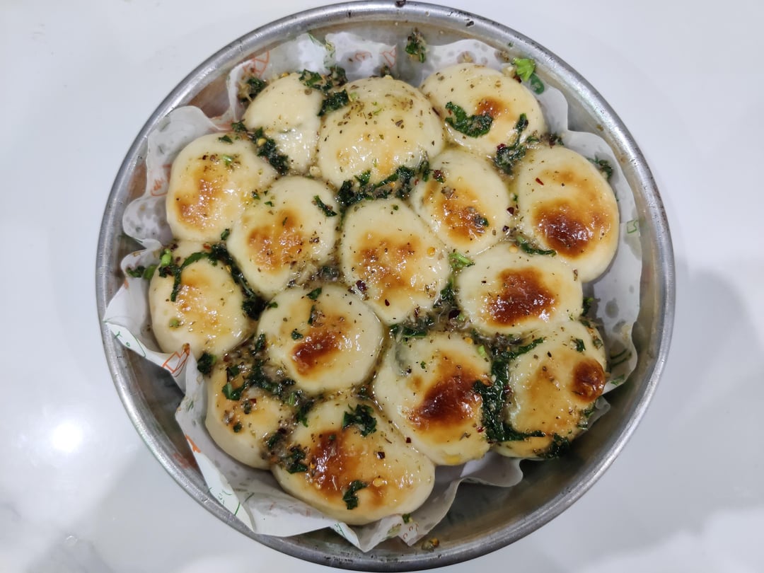 I had only made focaccia until now and this is my first try at making pull apart garlic buns. They turned out to be super soft and fluffy and were finished within MINUTES. Scroll to see the pictures I captured of the process, the last picture shows the filling. Super proud of how they turned out.