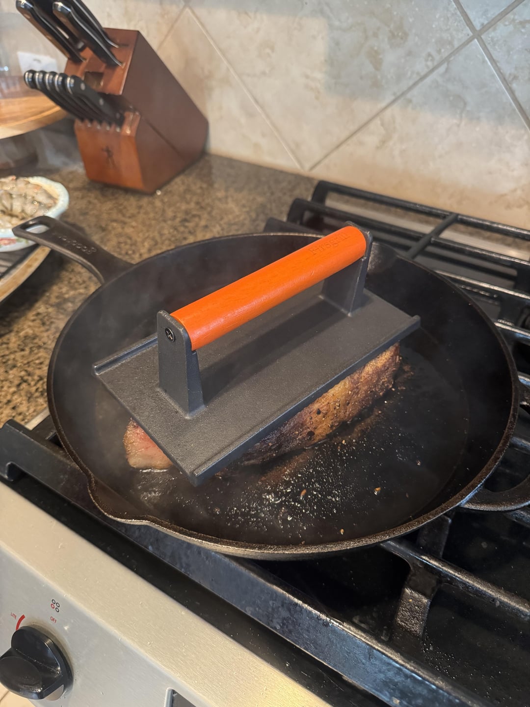 1st of all, fantastic steak and meal as a whole! Second, I used a hamburger press on my steak… I feel so validated ;-). I see you fam!