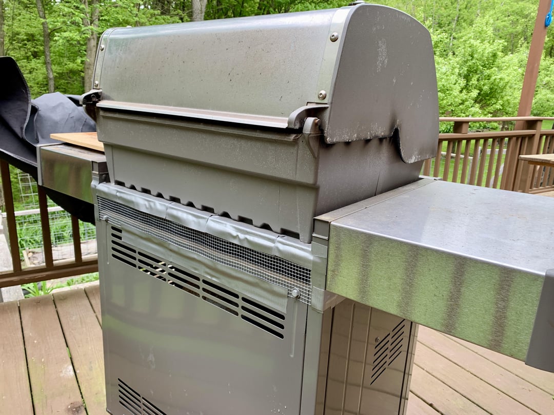 Last summer I got tired of digging the mouse debris out of my Genesis every time I wanted to fire it up. And yeah, at least once I didn’t realize that I needed to. I’m pretty sure I saw this cure on here somewhere. Use the best quality duct tape you can find, and cut some wire cloth to fit across the gap in the back and under the side wings. This has worked great for me for a year now.