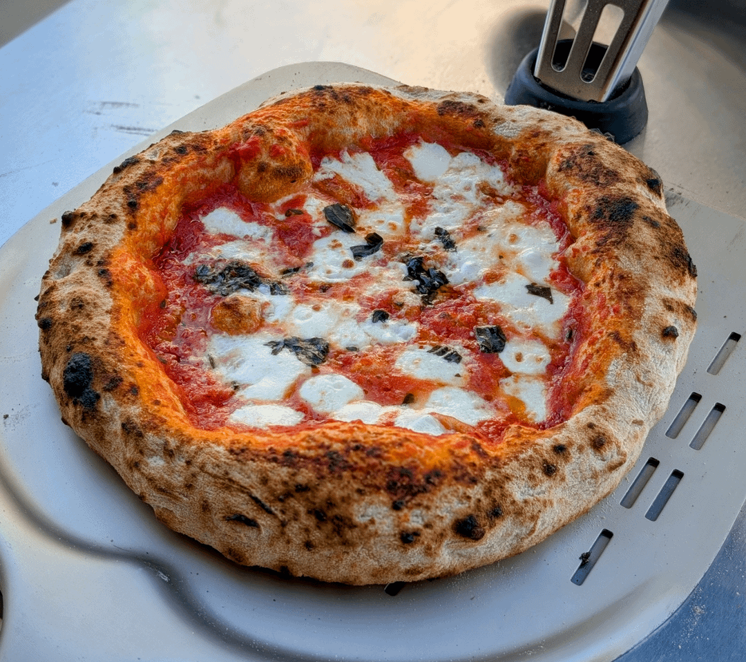 Gozney Roccbox 850f, Mutti tomato, galbani fresh mozzarella, King Arthur organic whole wheat flour, Polselli Vivace 00.