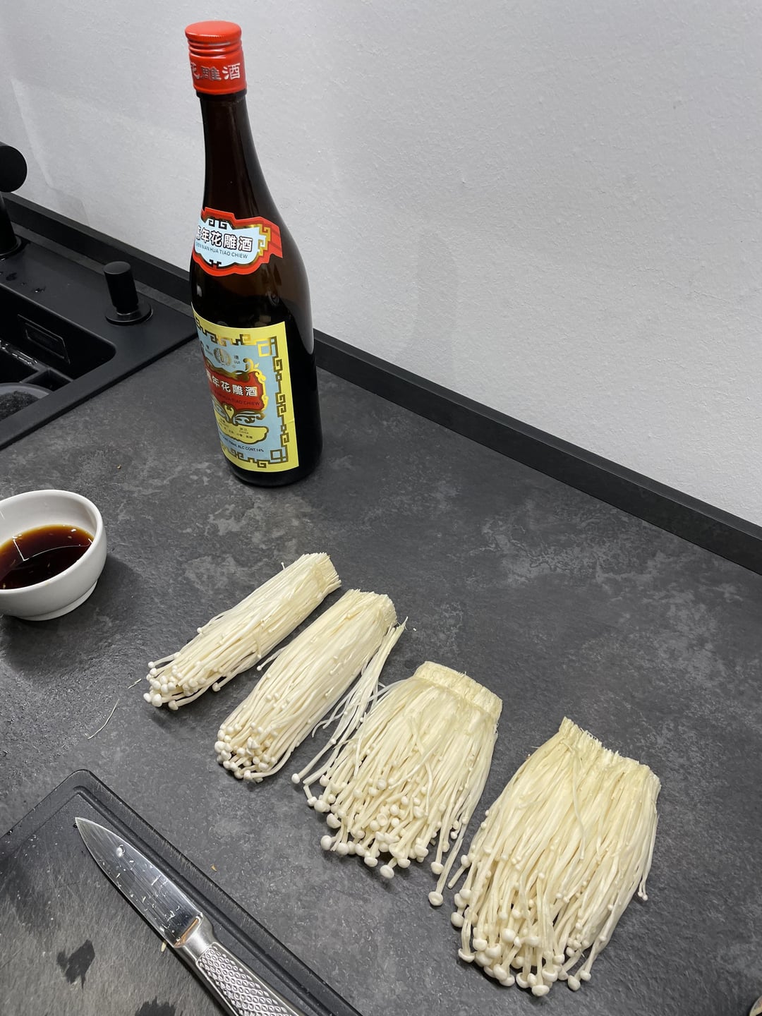2. I would recommend cutting off the base of the enoki mushrooms next time. It’s almost impossible to get all of the dirt and debris, and it’s also a bit tough. I totally understand the intention behind it being to keep them all together though 👍🏽.