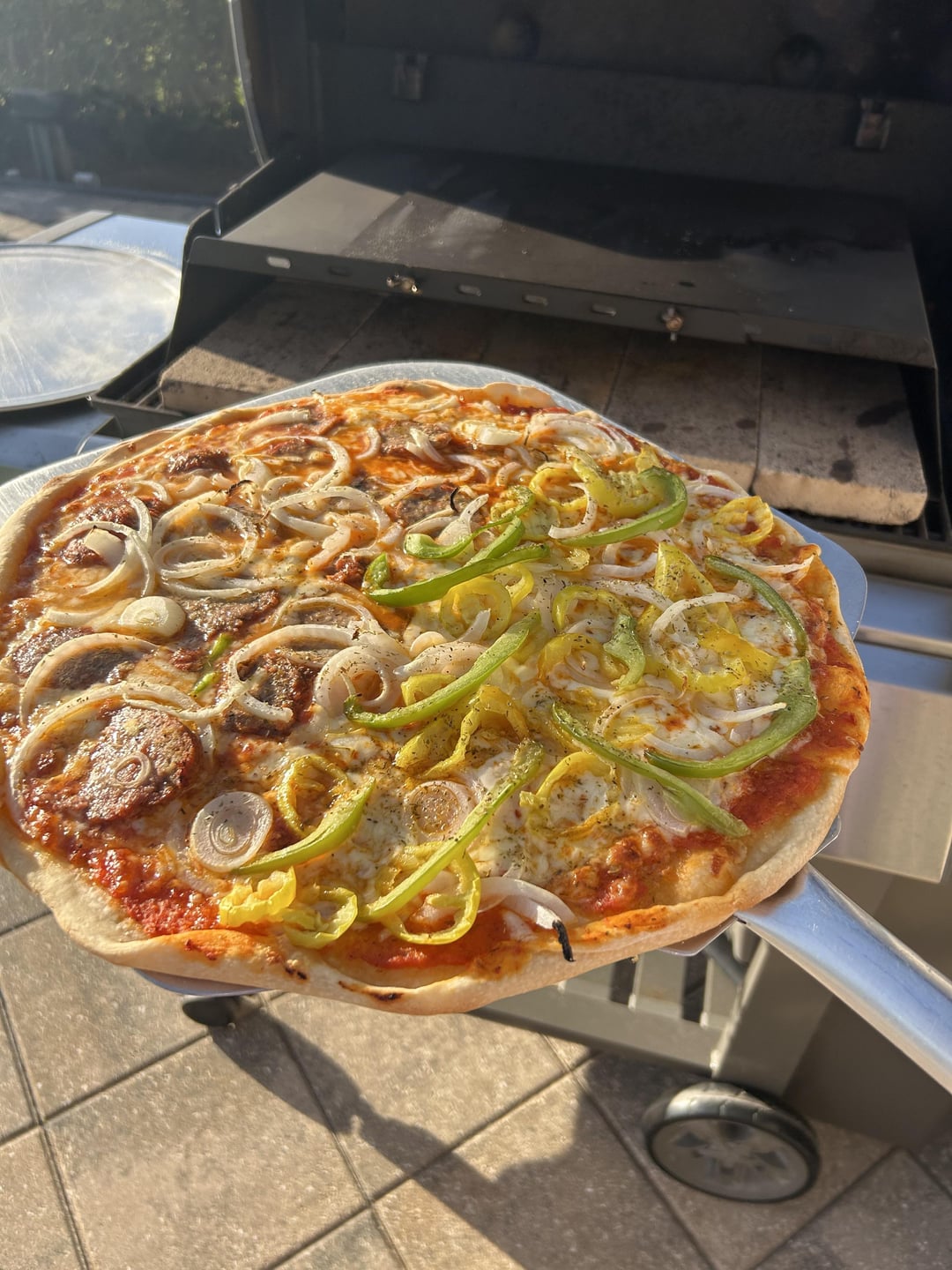 Enjoyed seeing everyone’s pizzas for a long time. This is my first post of pies. These were to share with our son visiting us here in SW Florida.by WebberPizza 5 Comments Mobile_Aioli_6252 5 months ago Beautiful looking pizza pie MrZeDark 5 months ago It looks delicious, any reason though why there is no rise? Were you going for a tavern style’esque? 🙂 TranscendentalObject 5 months ago Is it frustrating to maintain heat with that setup? Pies look good ! agoogua 5 months ago That second one looks great, although I like my toppings cut up into smaller pieces than that personally. PUSSAD 5 months ago What is that you’re using for a deflector? Are those fire bricks the pizza is on? Very interested in this setup. Pies look great!Write A CommentYou must be logged in to post a comment.