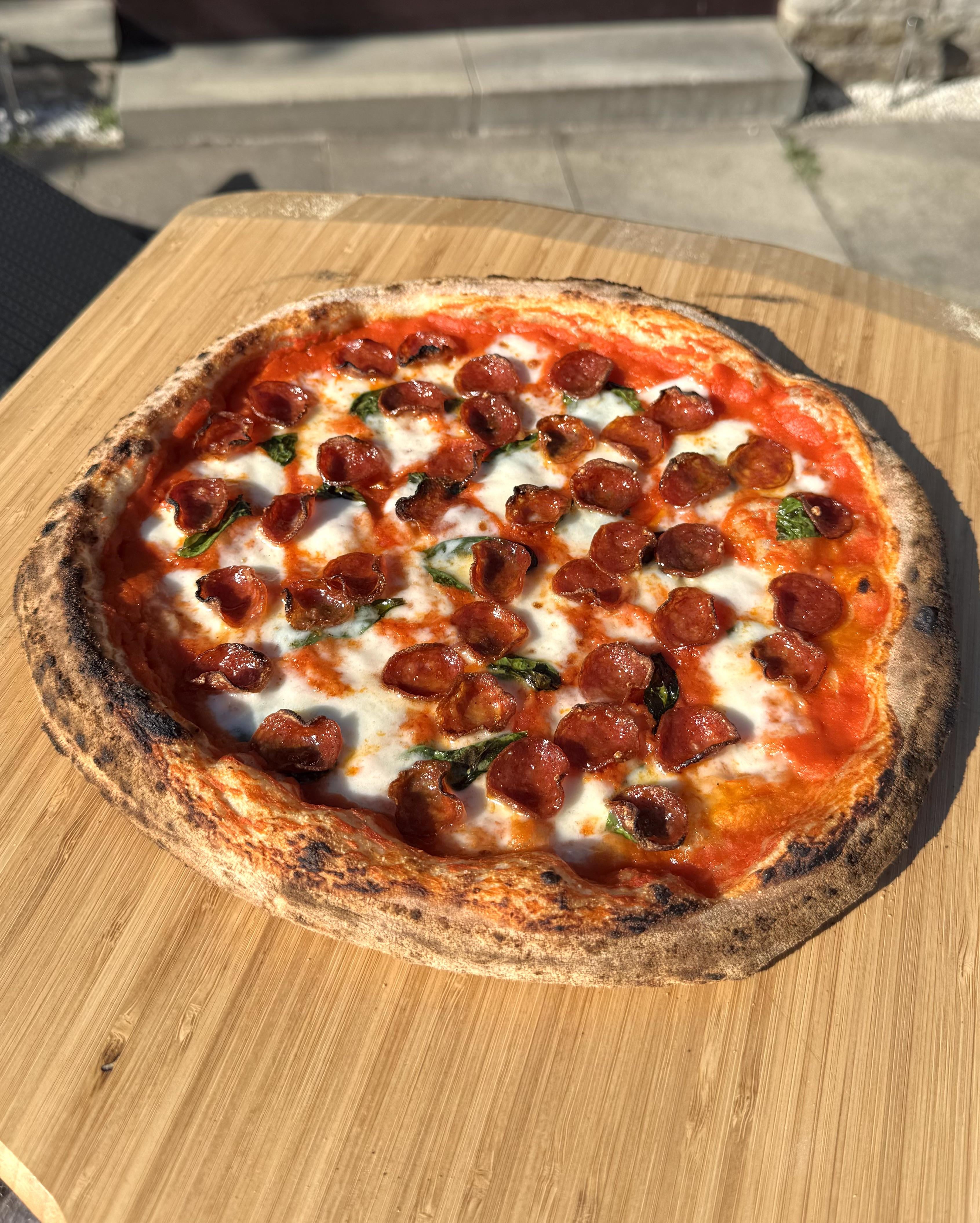 TranscendentalObject 5 months ago Excellent topping distribution, perfect circular shape, perfect cook on the crust. Don’t even need to see the bottom to know this is a winner, nice.