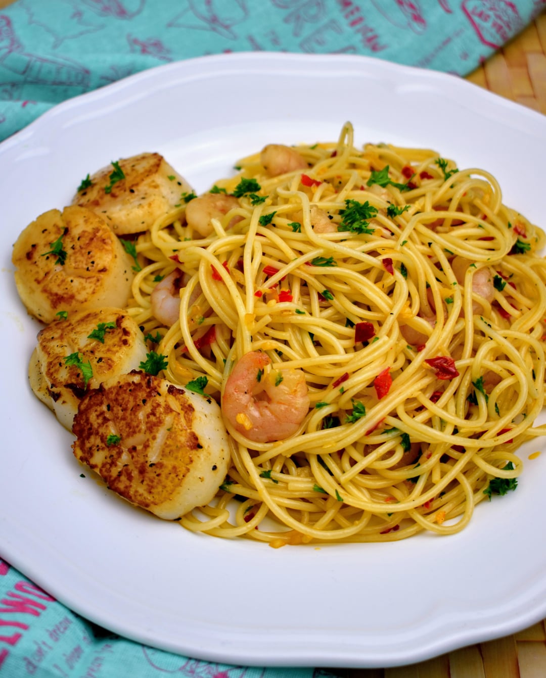 Homemade Seafood Aglio Olio 🦐🍝 I tried my best 🤗