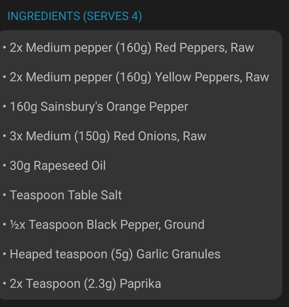 Peppers and onions – sliced and fried with additional ingredients as per recipe.