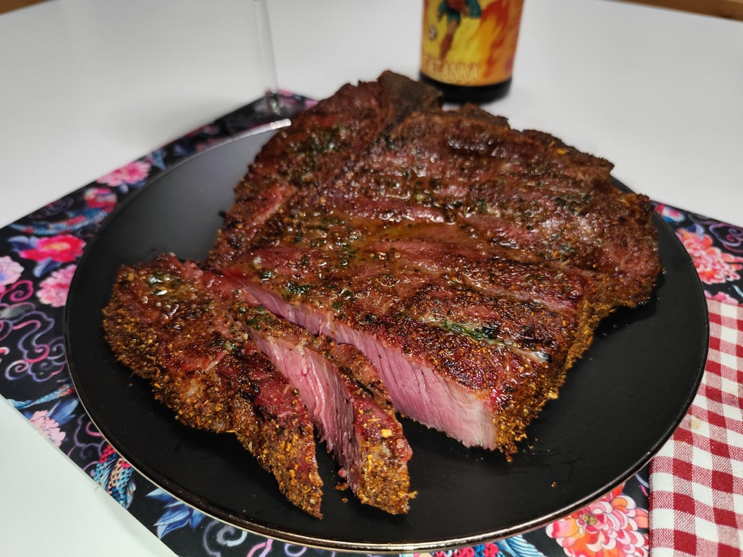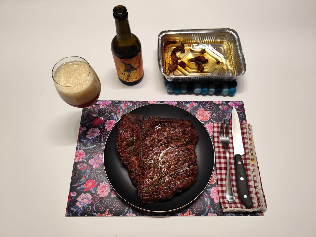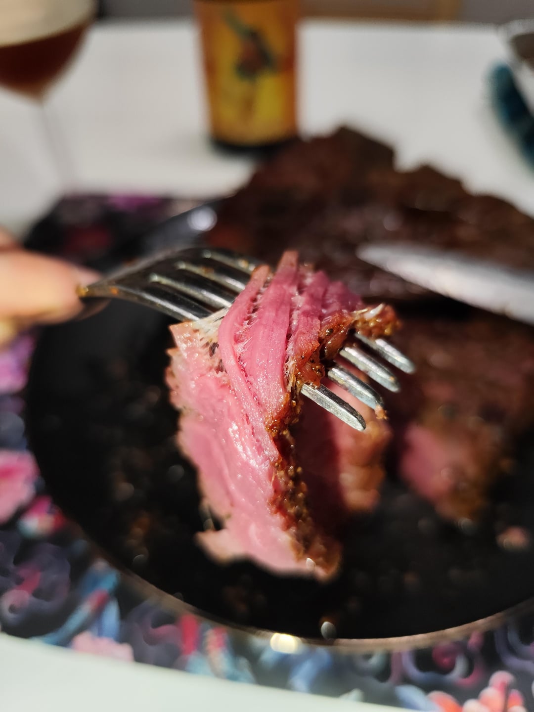 Or maybe I should call it "Fiorentina di cavallo". Smoked on a Traeger Ironwood 650 at 105°C until 49°C internal and then seared at 230°C, each side for 3 minutes.