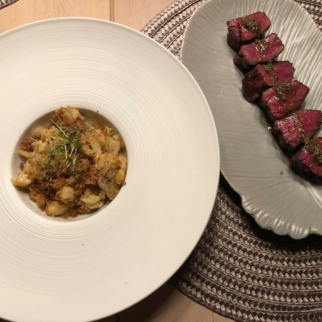 Onglet, 53 degree Celsius. With truffle butter and fried cauliflower.