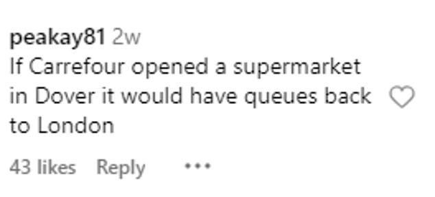 And another, @peakay81, quipped: ‘If Carrefour opened a supermarket in Dover it would have queues back to London.’