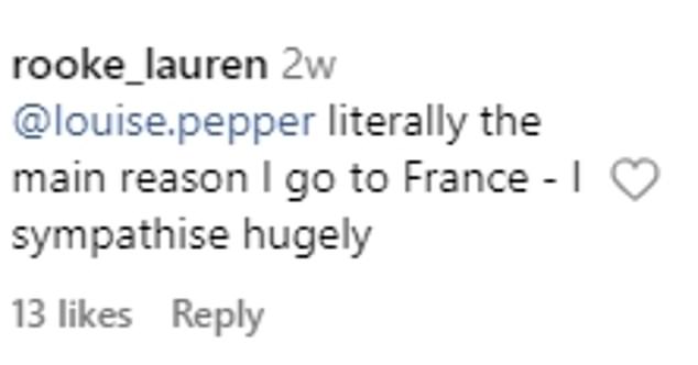 While another, @rook_lauren, wrote: ‘Literally the main reason I go to France – I sympathise hugely.’