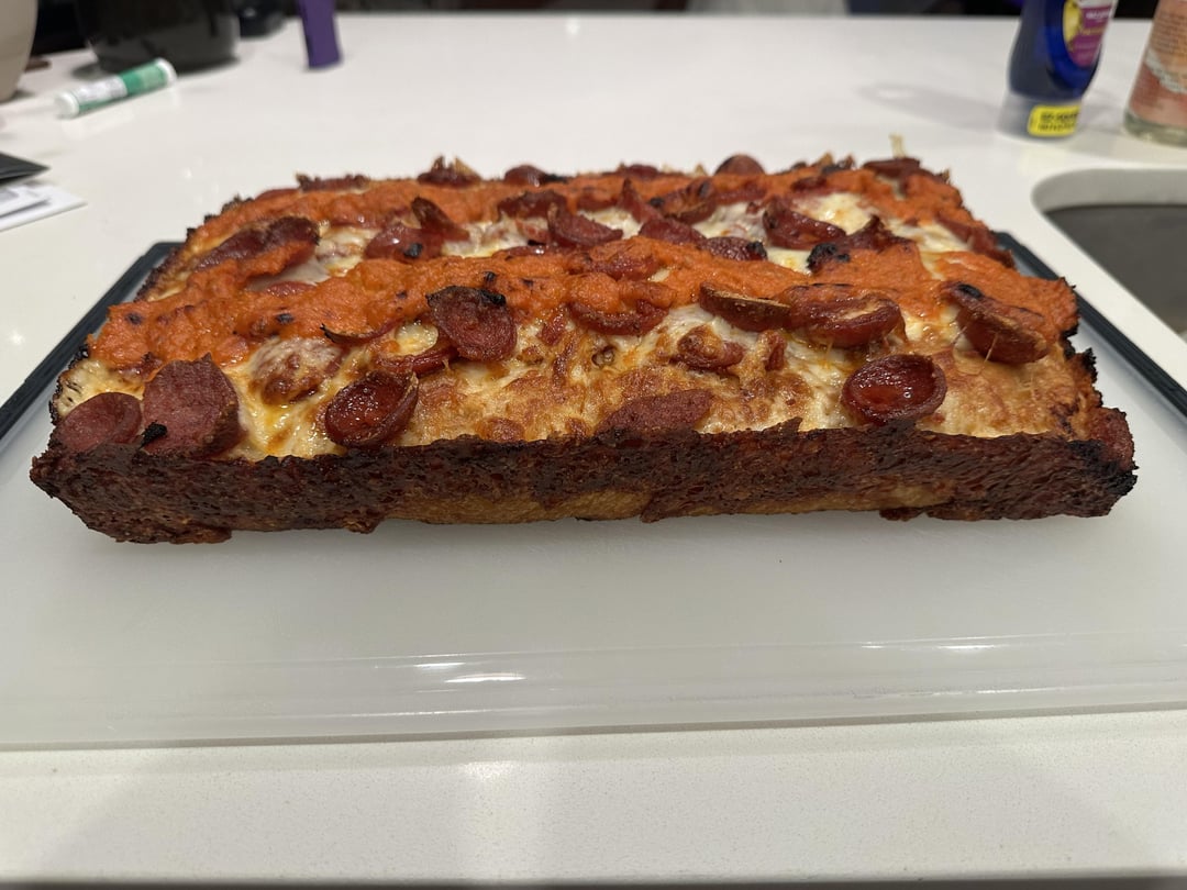 1. I personally enjoy some good lift in my slices as long as its not too dense. Tall fluffy Detroit slices are great! Nice work.