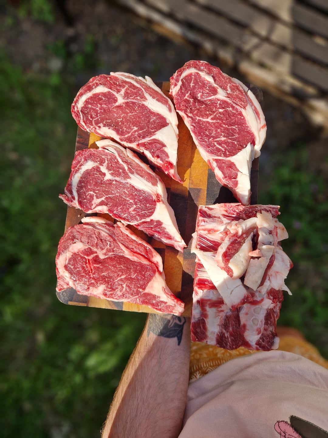 Cut it into 4 steaks. 2 x 12oz, 1 x 15oz, 1x 19oz.