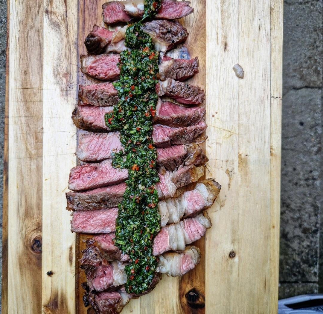 This is the 15oz. Cooked over charcoal with a dirty reverse sear straight on the coals.