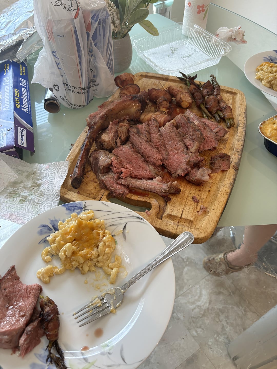 Cooked at 225 for an hour till steak hit 115 than took out the steak and let the Traeger at max heat and placed the steak on top of the searGrates for about 3 minutes on each side.