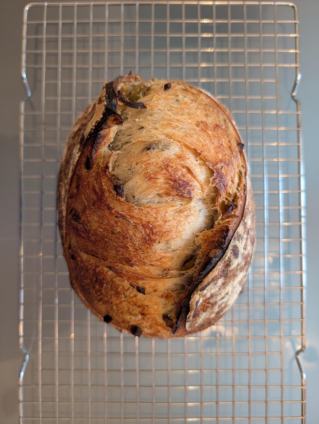 BakrBoy 9 months ago Great loaf! My go to is kalamata olives and rosemary, Iβll have to try green olives.