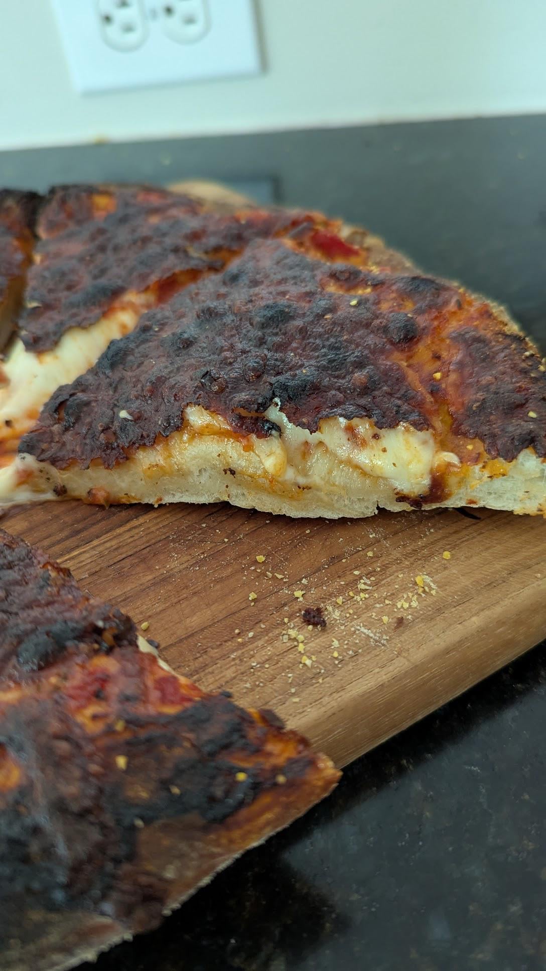 I’ve done something like this (although no tbh is bad), probably too hot of an oven, or the pizza was placed in as the oven was heating so the top melts first, and crisps too much before the bottom has time to thaw and cook properly.