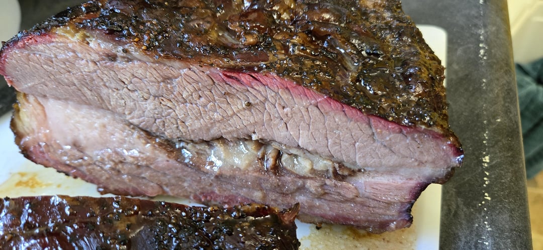 190 is too low to render fat. You can see the yellow seam of fat in the middle. I’ve made the same mistake thinking it was done without that fat seam being completely rendered down, which keeps the meat juicy. I wouldn’t cook any lower than 225 for a thick cut like brisket.