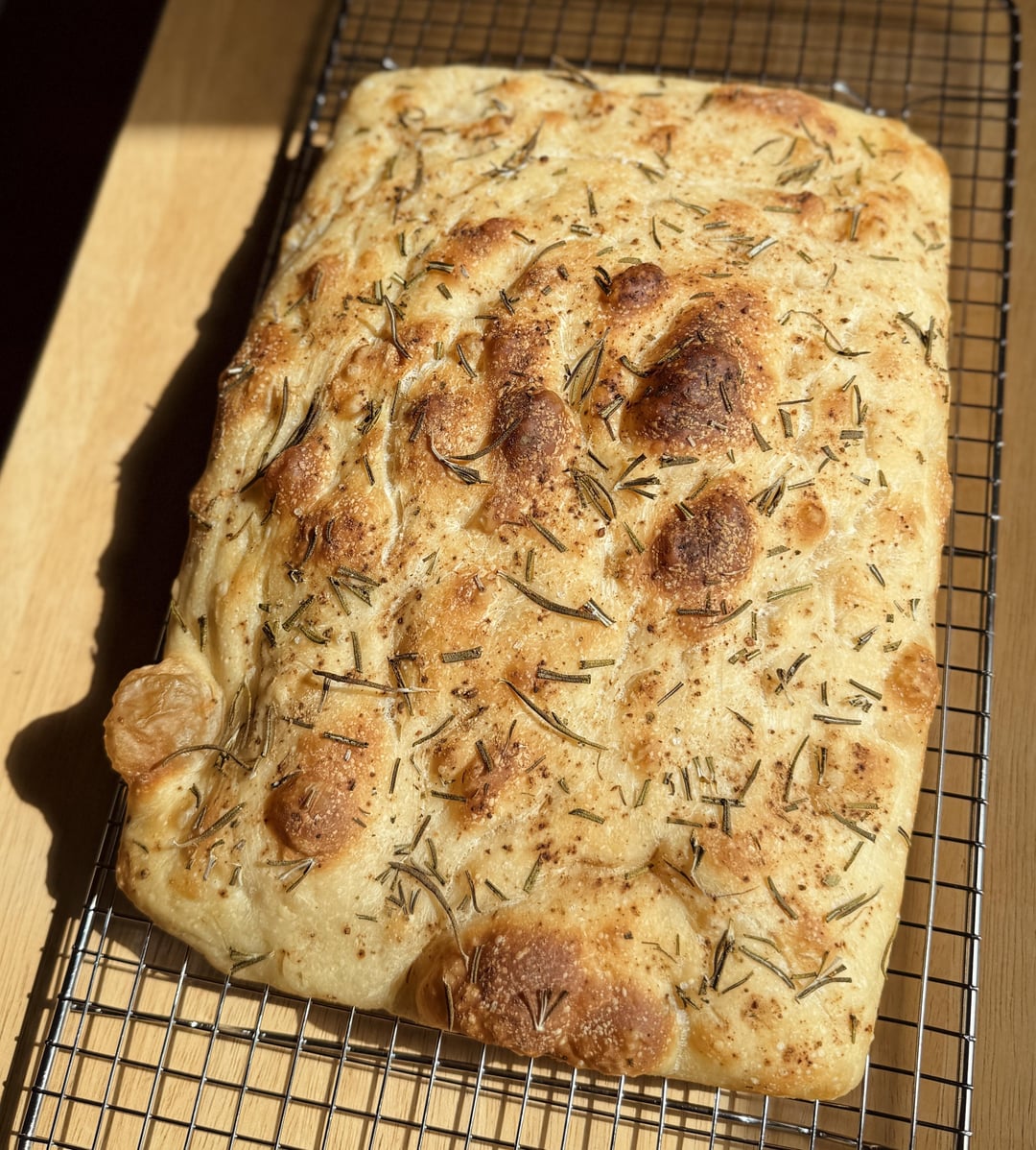 I have no experience with sourdough, but I’ve had a starter that someone gave me sitting in my fridge for over a year and I finally decided to try reviving it. I thought a loaf might be ambitious for my first project, so I went with focaccia! The bubbles! The springiness! The chew! 🤩 I’m excited to bake more things 🙂
