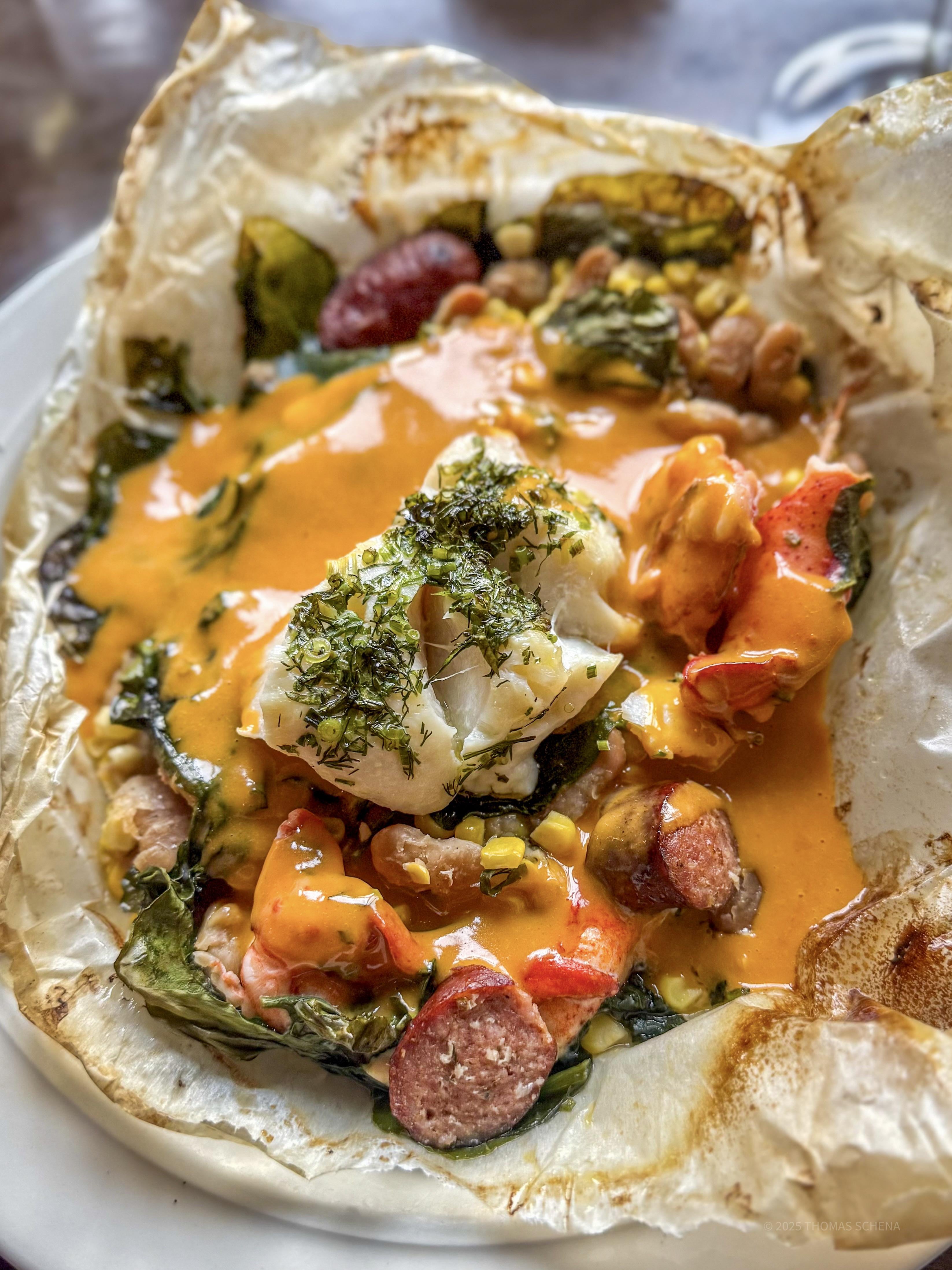 This is a cod and lobster en papillote.