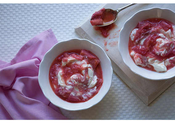 3. Serve half the yoghurt and mix in the warm rhubarb. Keep the remaining yoghurt for your leftovers.