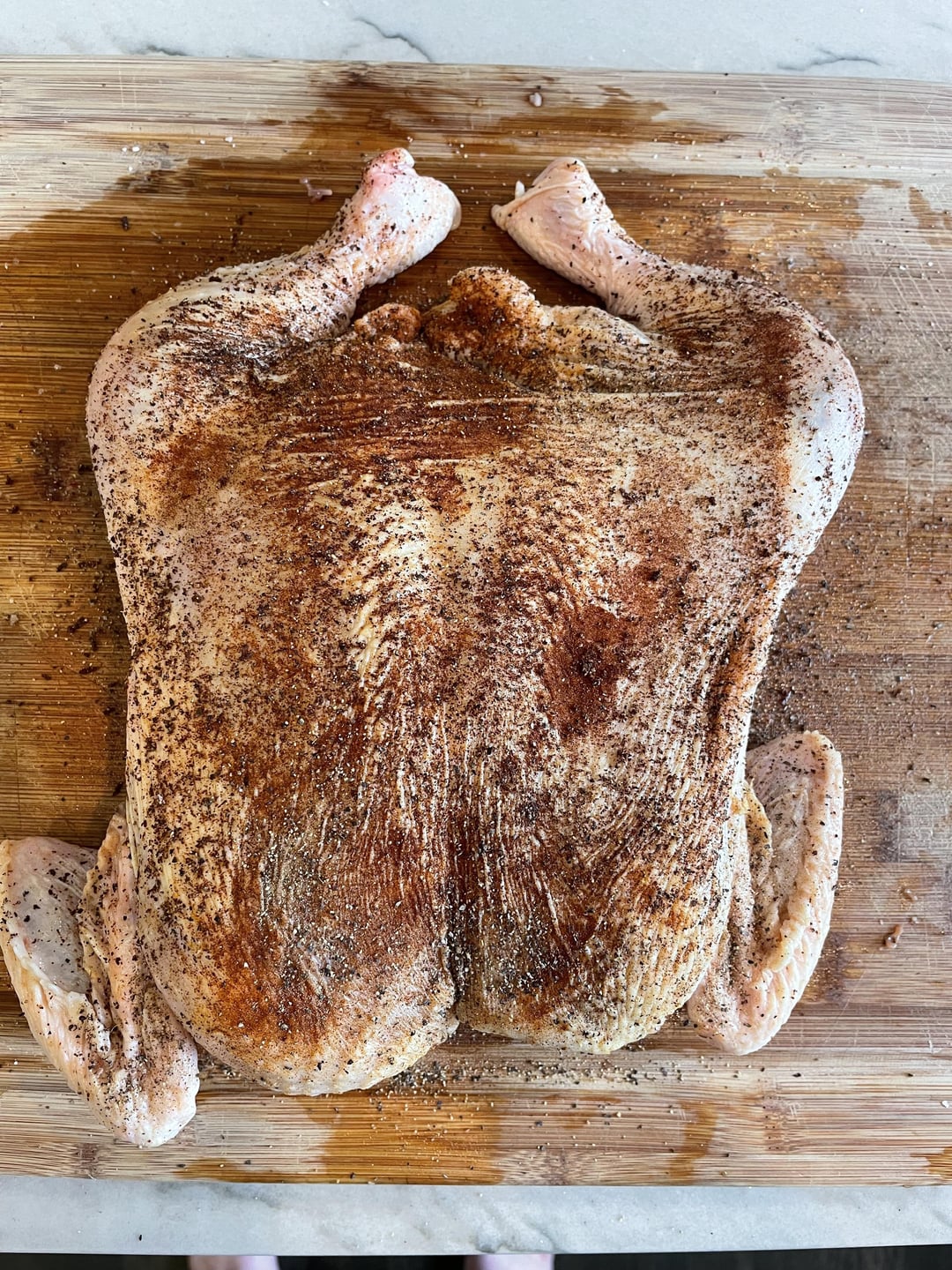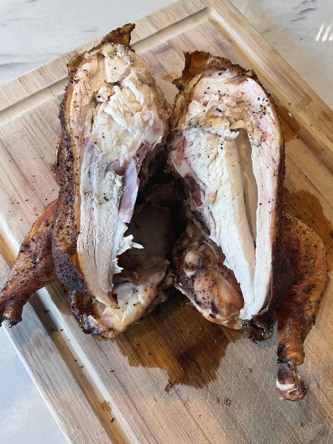 Try a smaller fresh turkey next. So juicy. It’s the only way I grill turkey. So juicy. Fresh sage butter under the skin and salt and pepper everywhere else. Spatchcock baby!