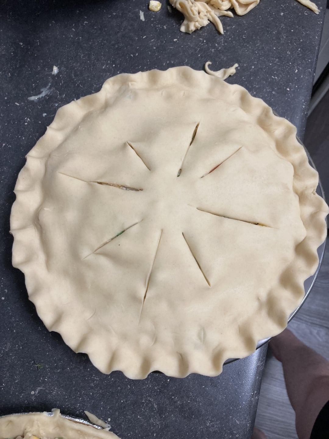 Everything from scratch except the pie crust, recipe makes two so one is in the freezer for future dinners 🙂 To be eaten with mixed green salad or slaw