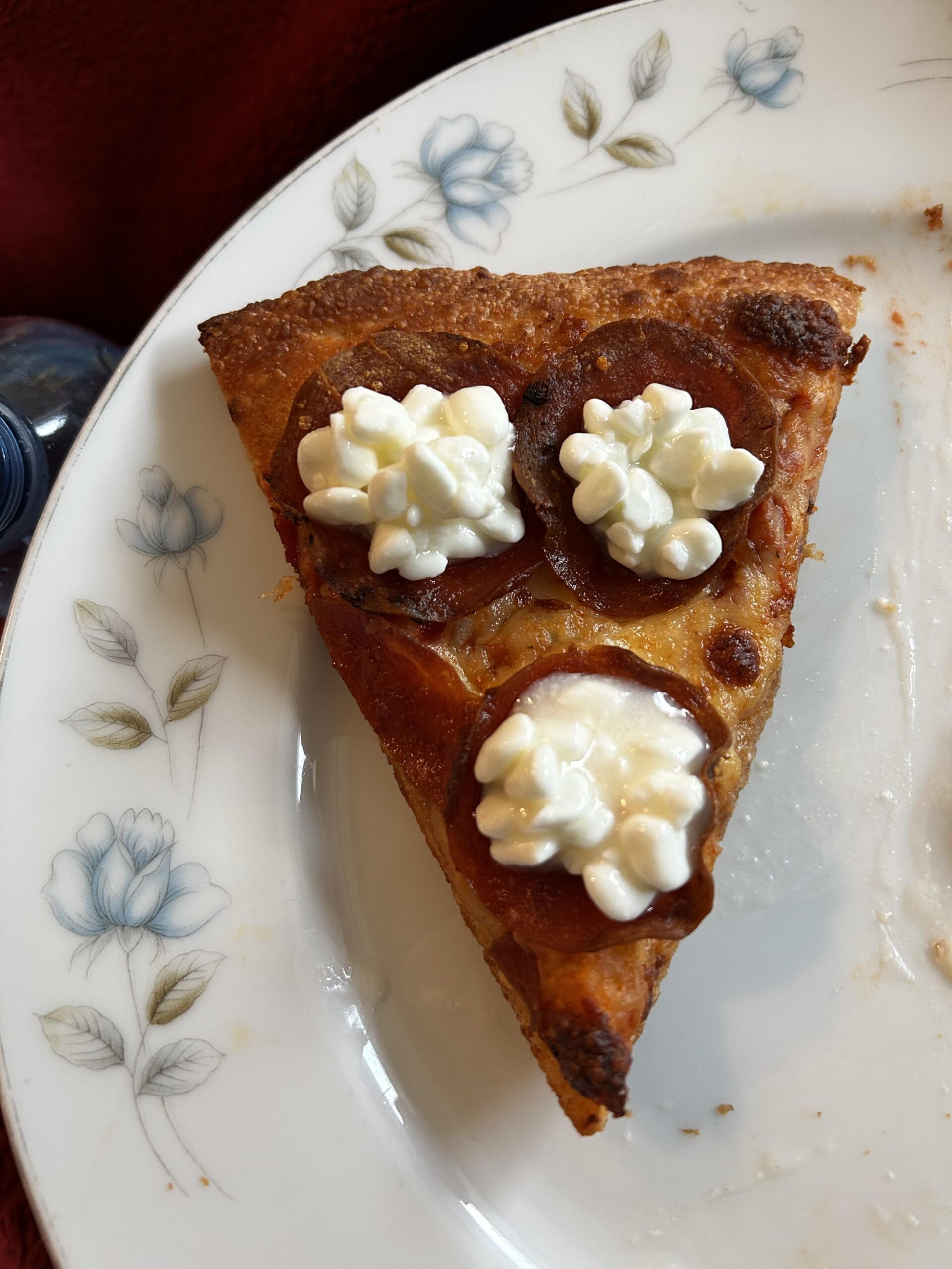 I wonder if they saw a pizza with whipped ricotta on top and decided that this makes sense.  I’ve had whipped ricotta on top of a Detroit style pizza and it was delicious.