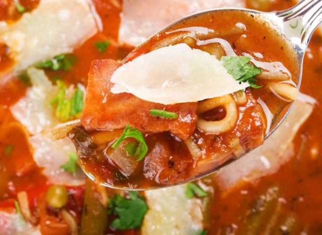 Unfortunately, not all soups are made equally. A bowl of Creamy Chicken and Potato soup contains a whopping 10 grams of saturated fat—thanks to the cream—as well as your complete daily value of sodium. With a low fiber content, this soup doesn’t offer much by way of nutrition. It’s important to remember that, if you choose a cream-based soup as a starter, you are going to want to take a beat before ordering a cream-based pasta dish, as well.