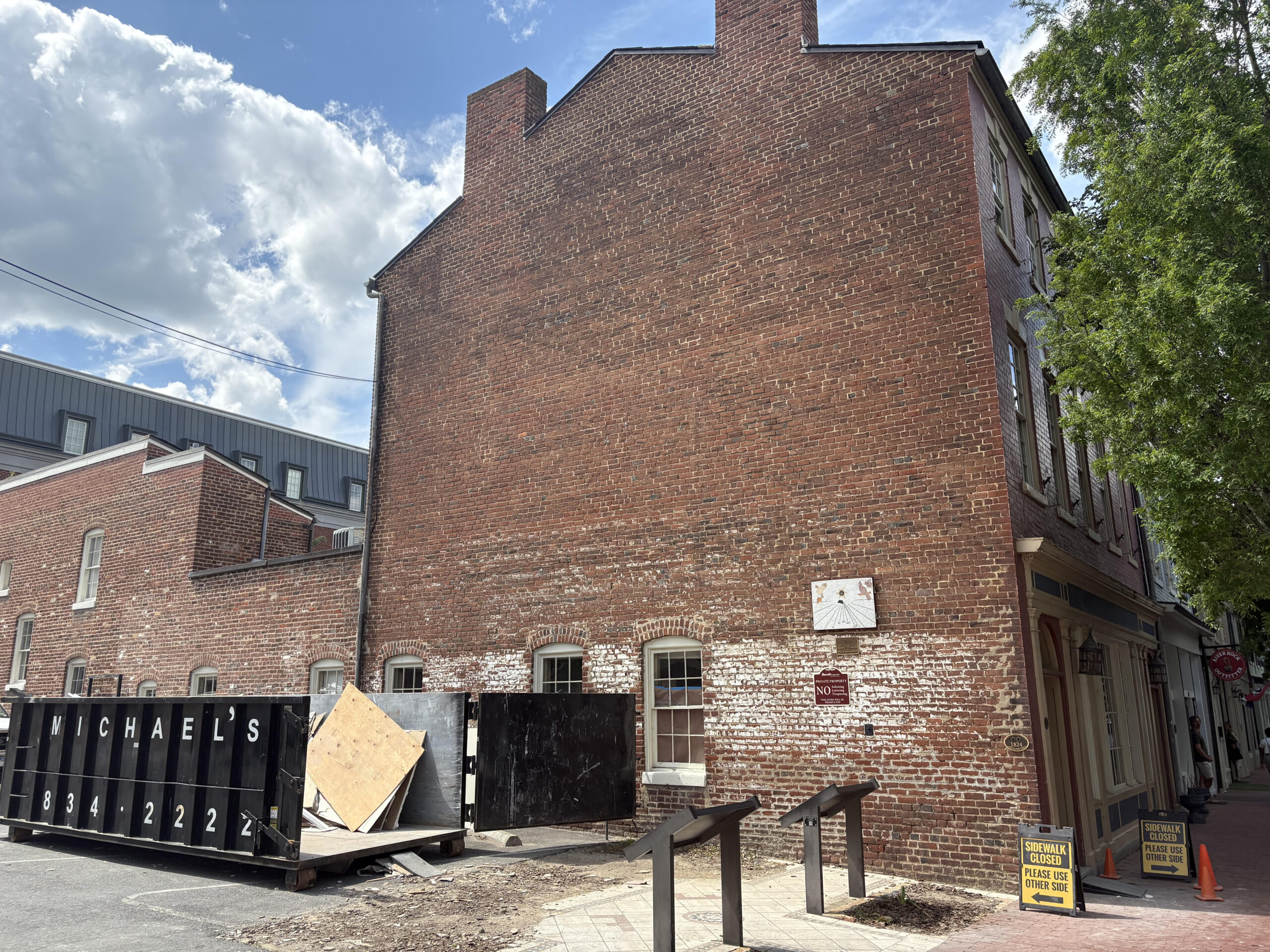 The dining addition is being built on the former parking lot, which is currently surrounded by temporary construction fencing. No timetable has been set for the restaurant opening, but the renovation of the 1820 building is underway. Connemara Corporation is the general contractor for the project, which also includes converting the second and third floors into two apartments.