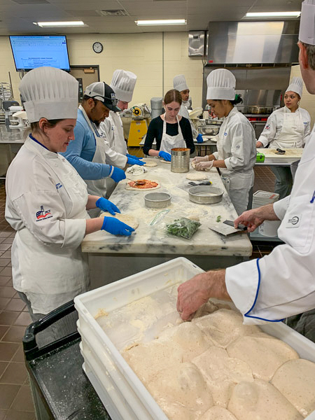 Chef Roberto Caporuscio made a return visit to the college’s Global Cuisines & Connections class to demonstrate the 300-year-old art of Neapolitan pizza and to encourage students to take part in a Spring 2026 Global Experience course that takes students on a hands-on culinary tour of Italy.