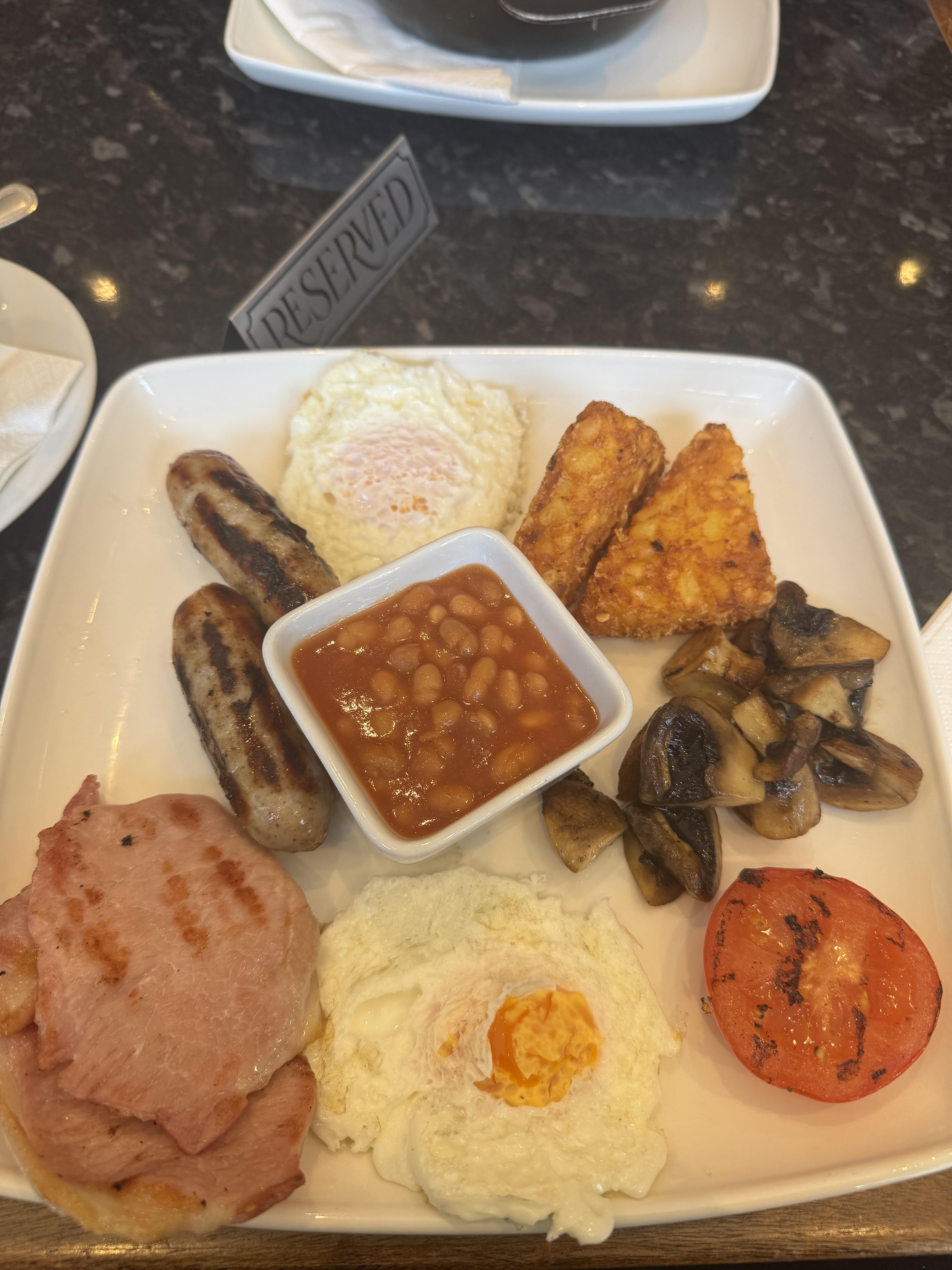 Their large breakfast. Two rounds of white toast and butter not pictured. Usually includes black pudding but I opted to remove it.by Ewmaa Write A CommentYou must be logged in to post a comment.