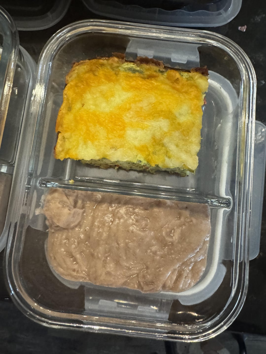 That’s obviously refried beans, which would be great with frittata! Also, can y’all not read? OP, thanks for acknowledging that meal prep can take time and effort. Not always the “easy” process that some portray it as.