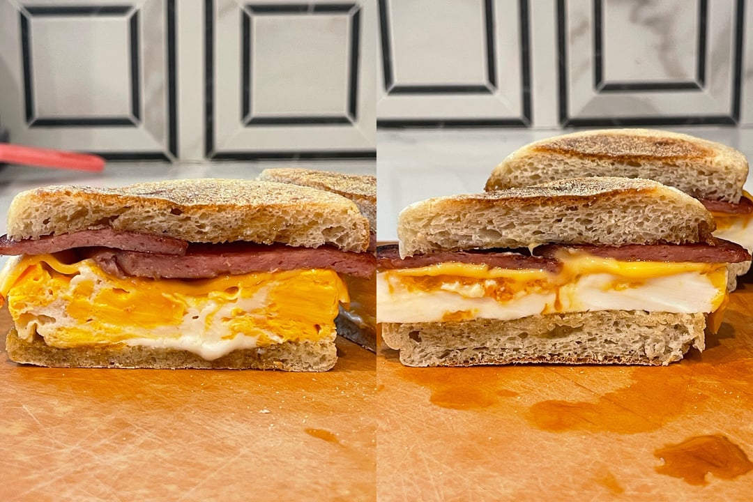 yes, that one prepared in the microwave looks better. also, i must say those sandwiches look too good
