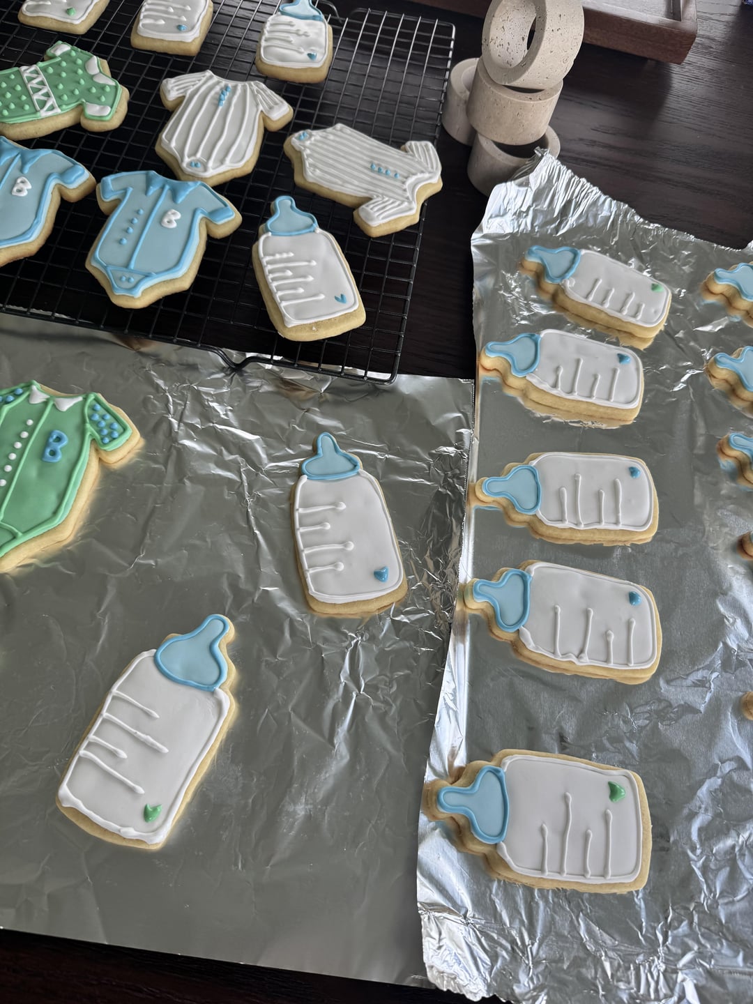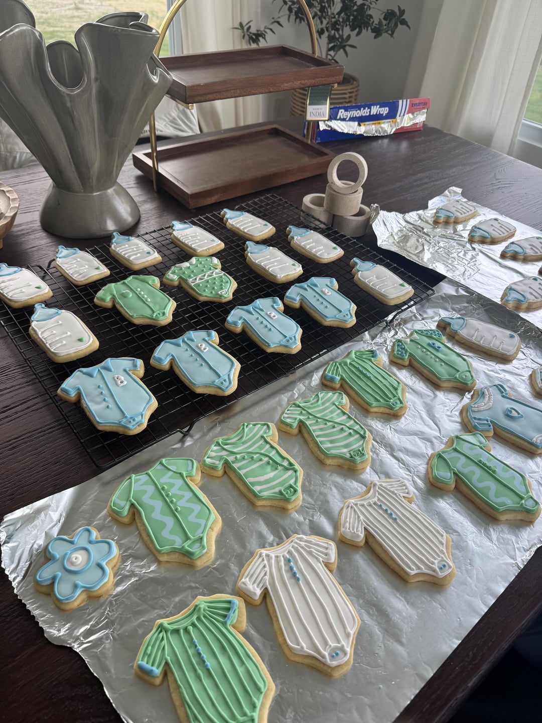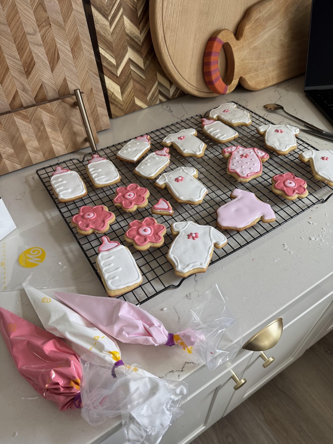 Big thank you to this crew! (First two photos) My first attempt at sugar cookies for my friends tiny sprinkle in April to (last 2 photos) my second attempt today for my own upcoming baby shower. The improvements are tiny but they feel major to me.