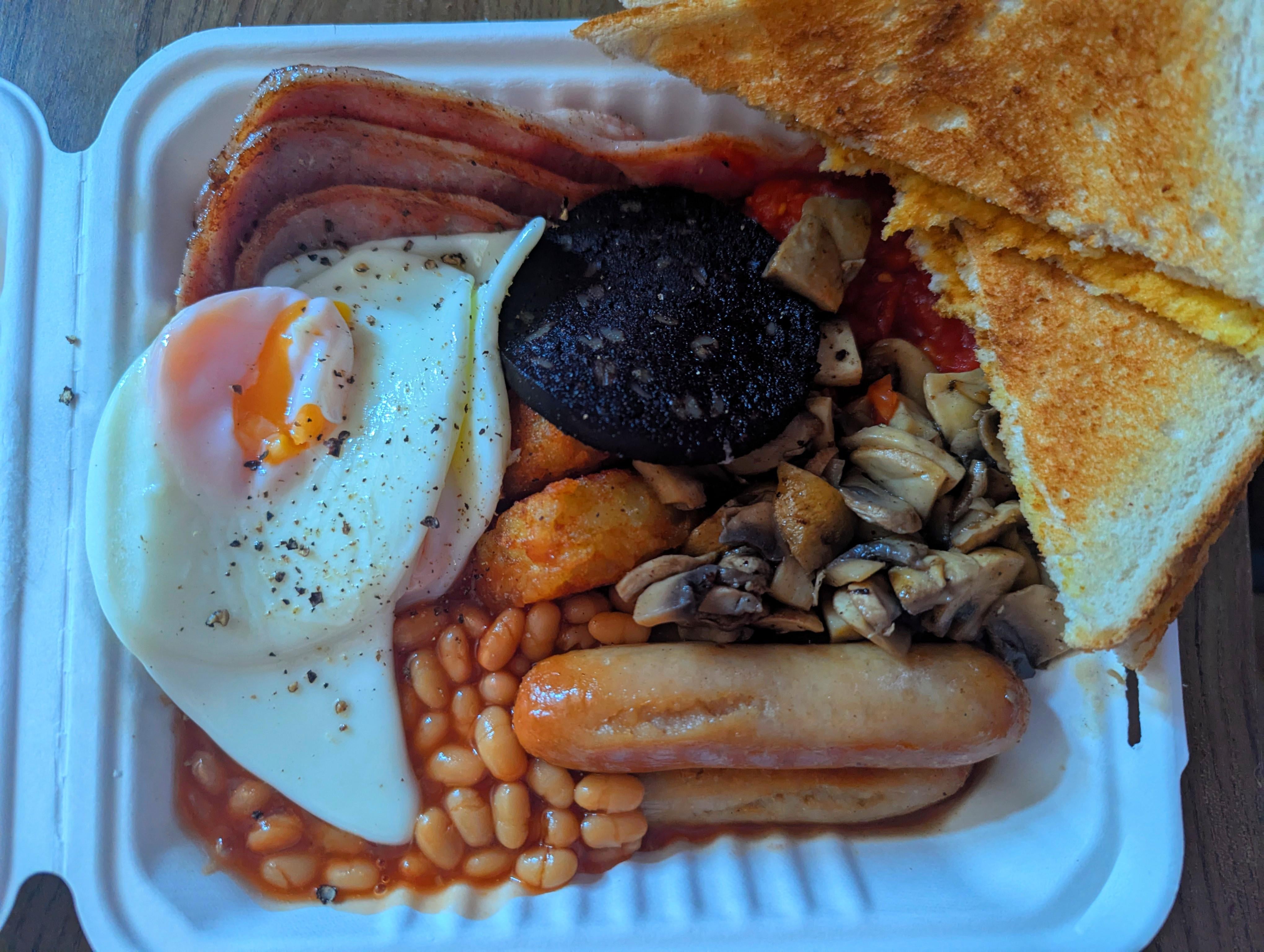 3 bacon, 3 sausage, 2 eggs, 2 hash brown, 2 toast, beans, mushies and toms.Hangover: cured. by hullk78 Write A CommentYou must be logged in to post a comment.