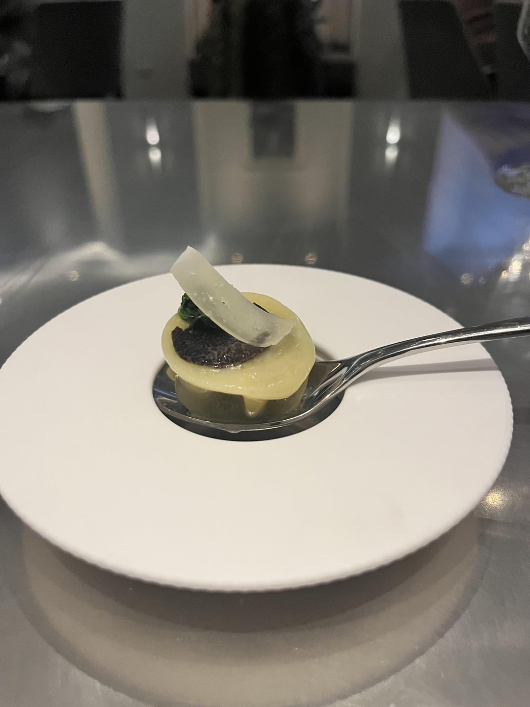 However, I found one of the servers was not in his right mind for the first hour of working – one of the table asked for a wine pairing and he forgot to remind the somm, and he wiped the ashes (p3) onto me when cleaning the table – pretty unprofessional for a three star lol. On the other hand, wine service was generous. One of the pair was supposed for two courses, and I drank it all after the first one. The somm refilled it for me.