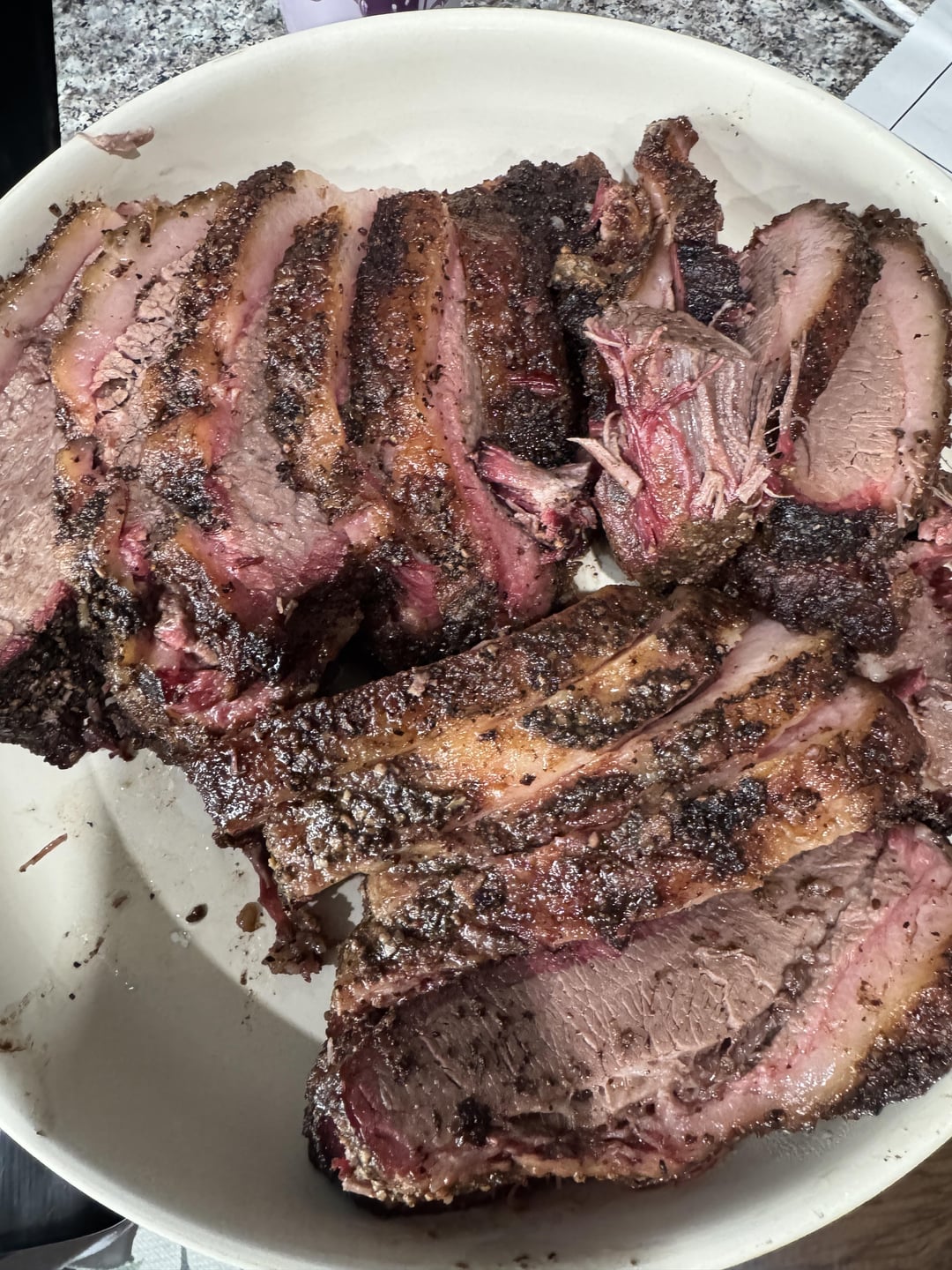 You should try the hot hold method. Cook until 195 and leave in a turkey roaster (I have a cheapo one from Walmart at under $40). Make sure to use ambient probes to see where 150 degrees is and mark it since those dials are very inaccurate. Let rest for 12+ hours and you eat when you want, not when the brisket is done cooking and then waiting for rest. Makes for easier timing. Now I just wake up in the morning the day before, cook it and then leave it in the roaster the next day until we’re ready to eat it. No more overnight cooks for me.