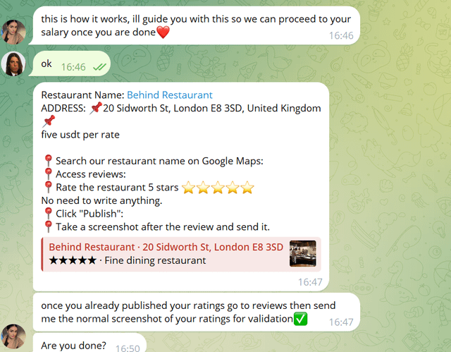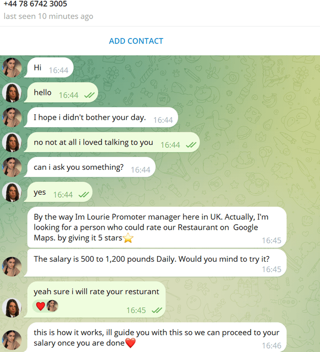 I'm not sure where to post this or anything, but I got this message on telegram, I was going to mess with the scammer, I checked the reviews, there are a lot of people saying they also got messaged like this, and there is so many of them with just 5 stars and nothing else. Also, I rated it 1 star.