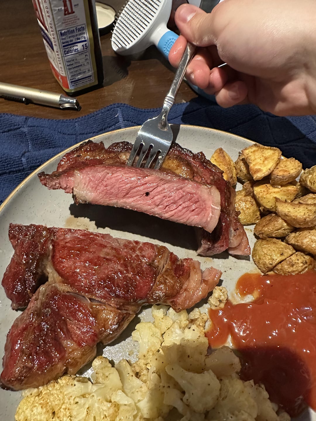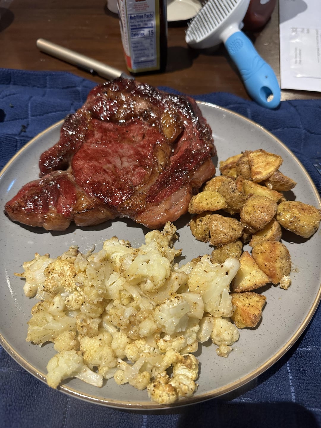 Double starches, I get it. Don’t sleep on green-colored things my man! (steak looks wonderful)