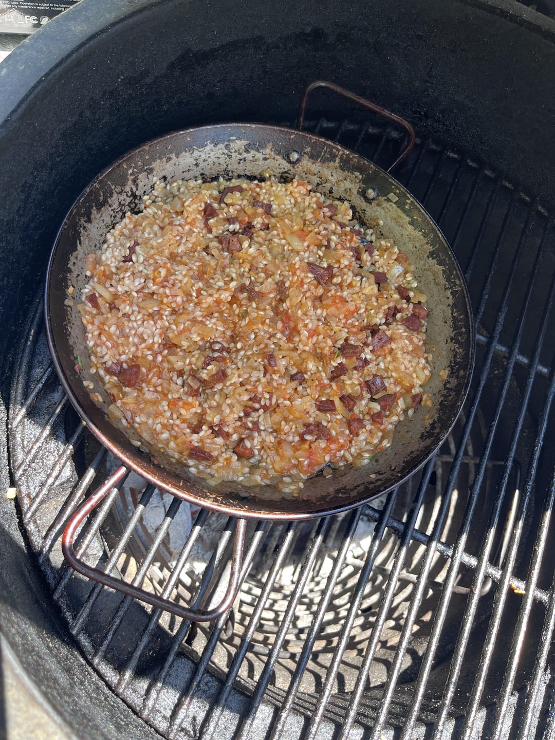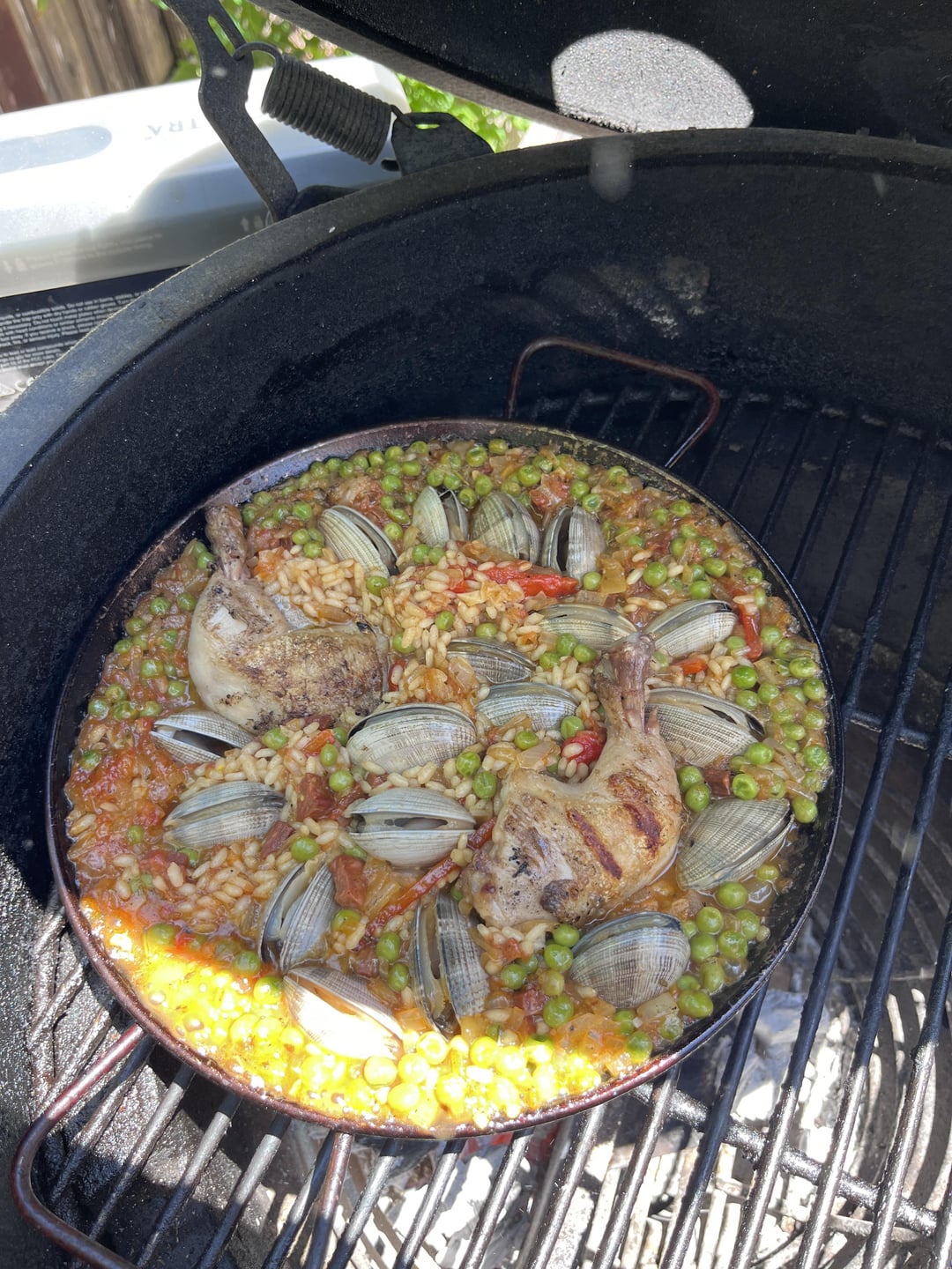 Yes! The best way to cook a paella ! I do mine on a Weber kettle, but same idea!