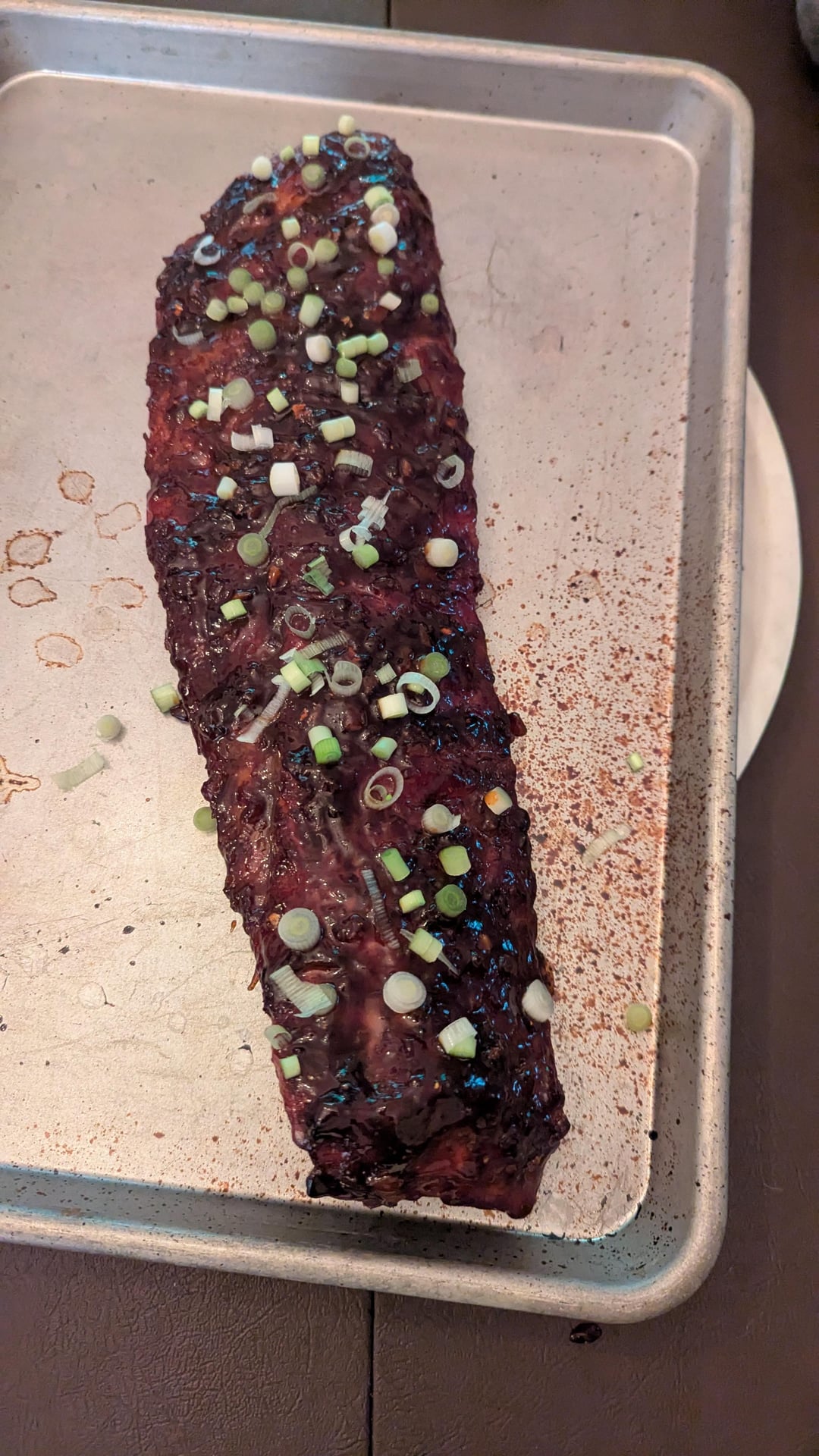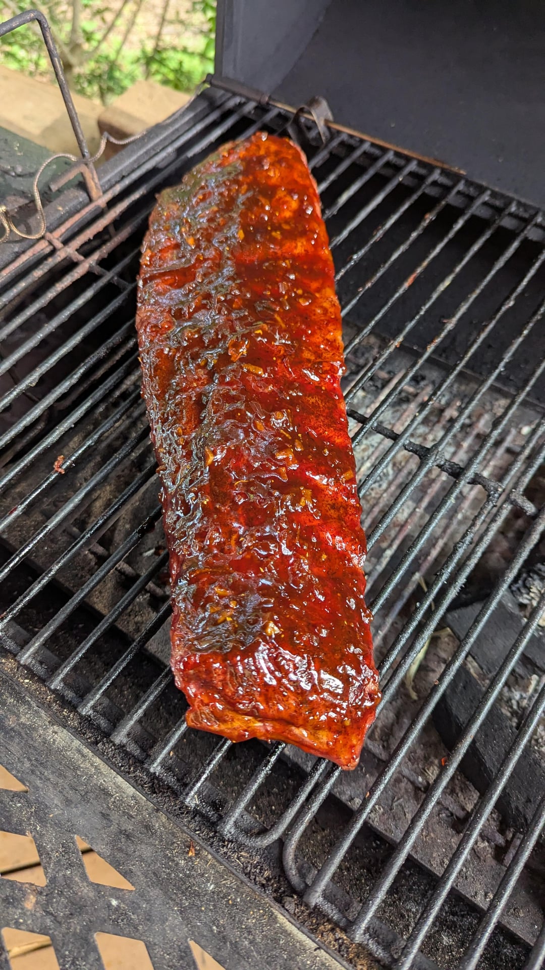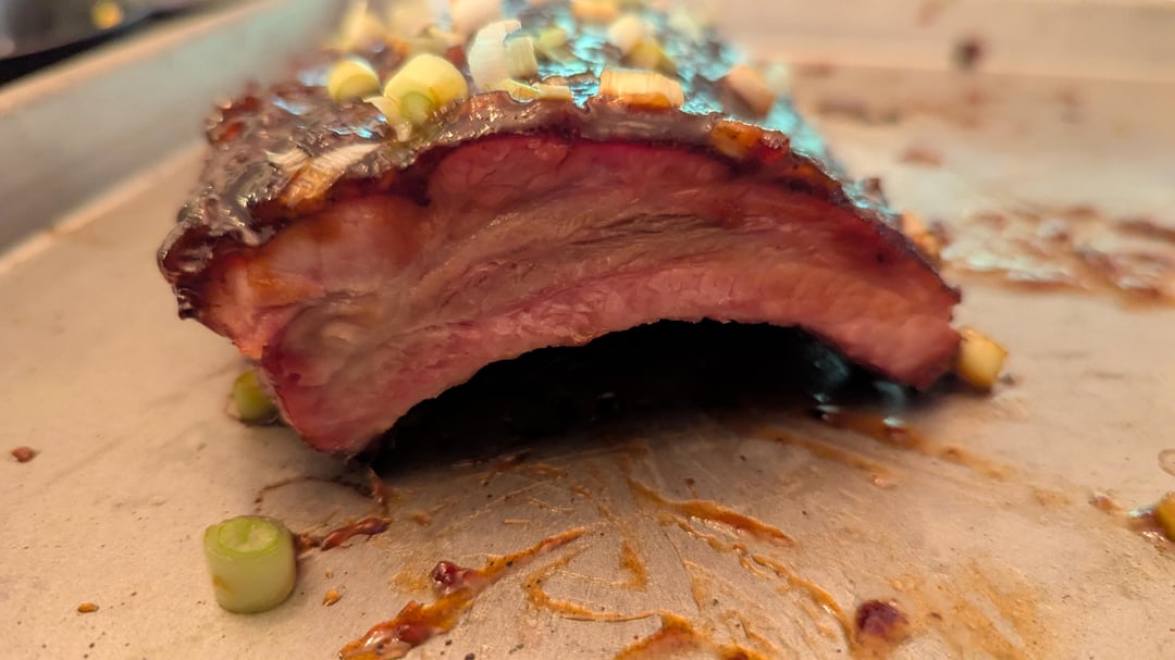 It was an Asian sweet and spicy mix on the baby back ribs. The side dish Korean corn and cheese cooked on the grill. Desert was grilled Mango