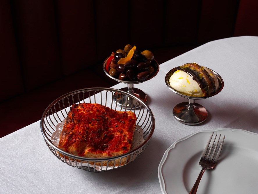 Another dish that branches away from the northern offering while remaining complementary is the tuna caponata. “We flatten out tuna sashimi and fill it with concentrated caponata,” says Pepperell. “We then blanch, peel, and semi-dry tomatoes overnight in a low oven before we turn them into a jam that’s mixed in with the caponata ingredients of pickled celery, pine nuts, and smoked eggplant. It’s almost like a concentrated relish which we wrap the tuna around. It’s been really popular.” Sydney is, after all, a seafood-loving city, and the fish-centric take on a typical Sicilian dish speaks to the team’s understanding of which menu items will resonate with guests.
