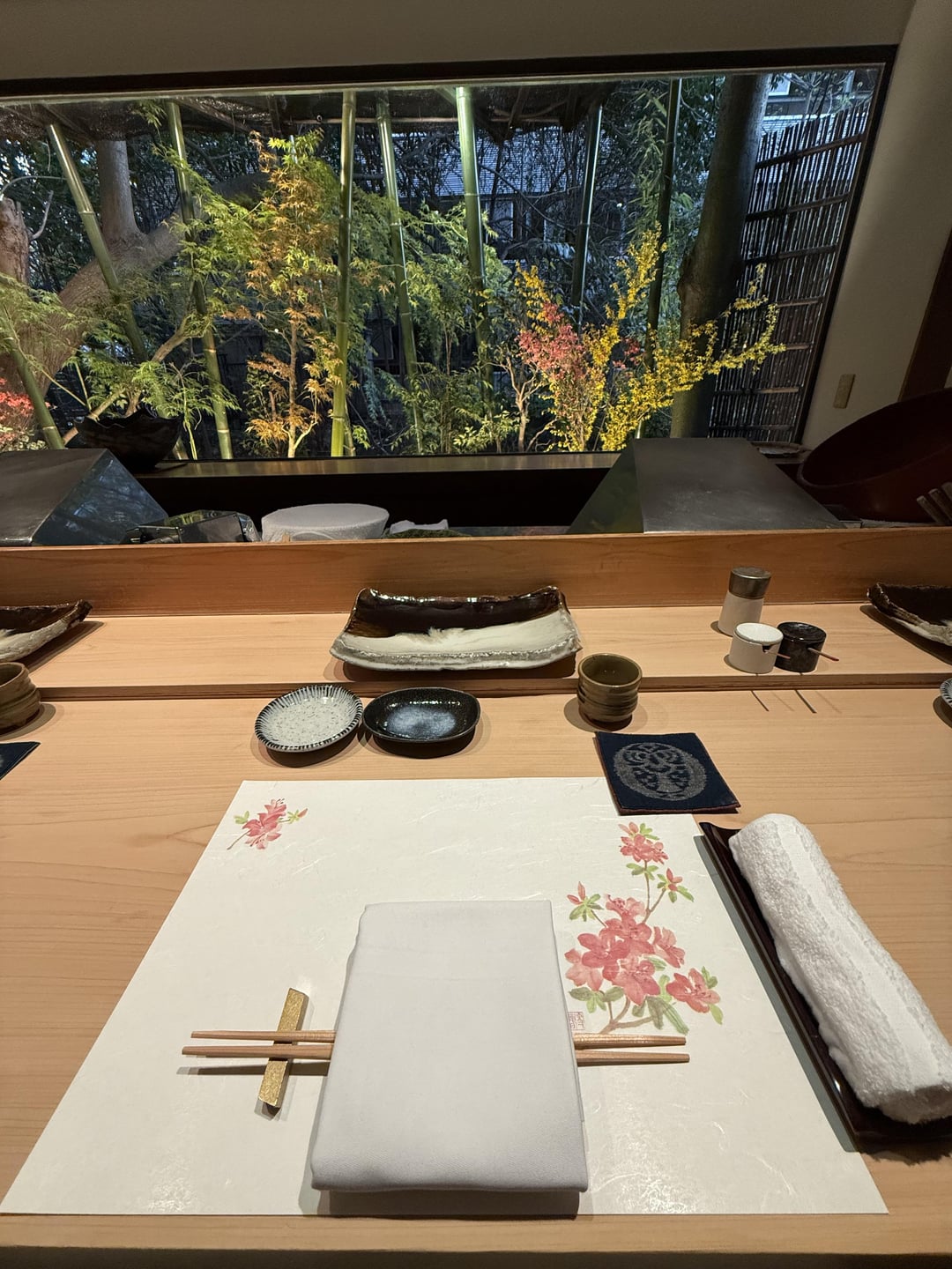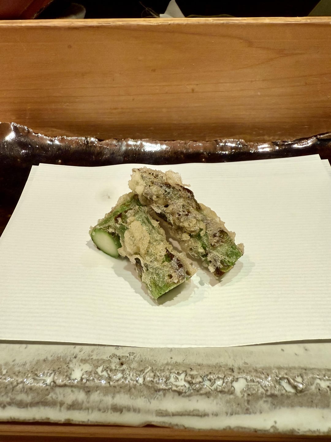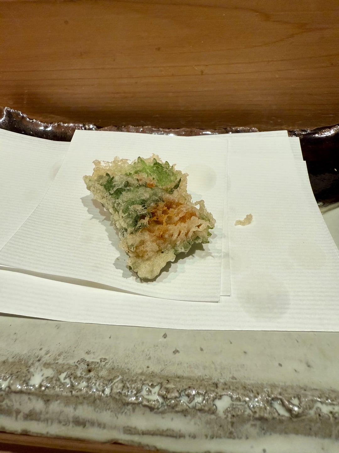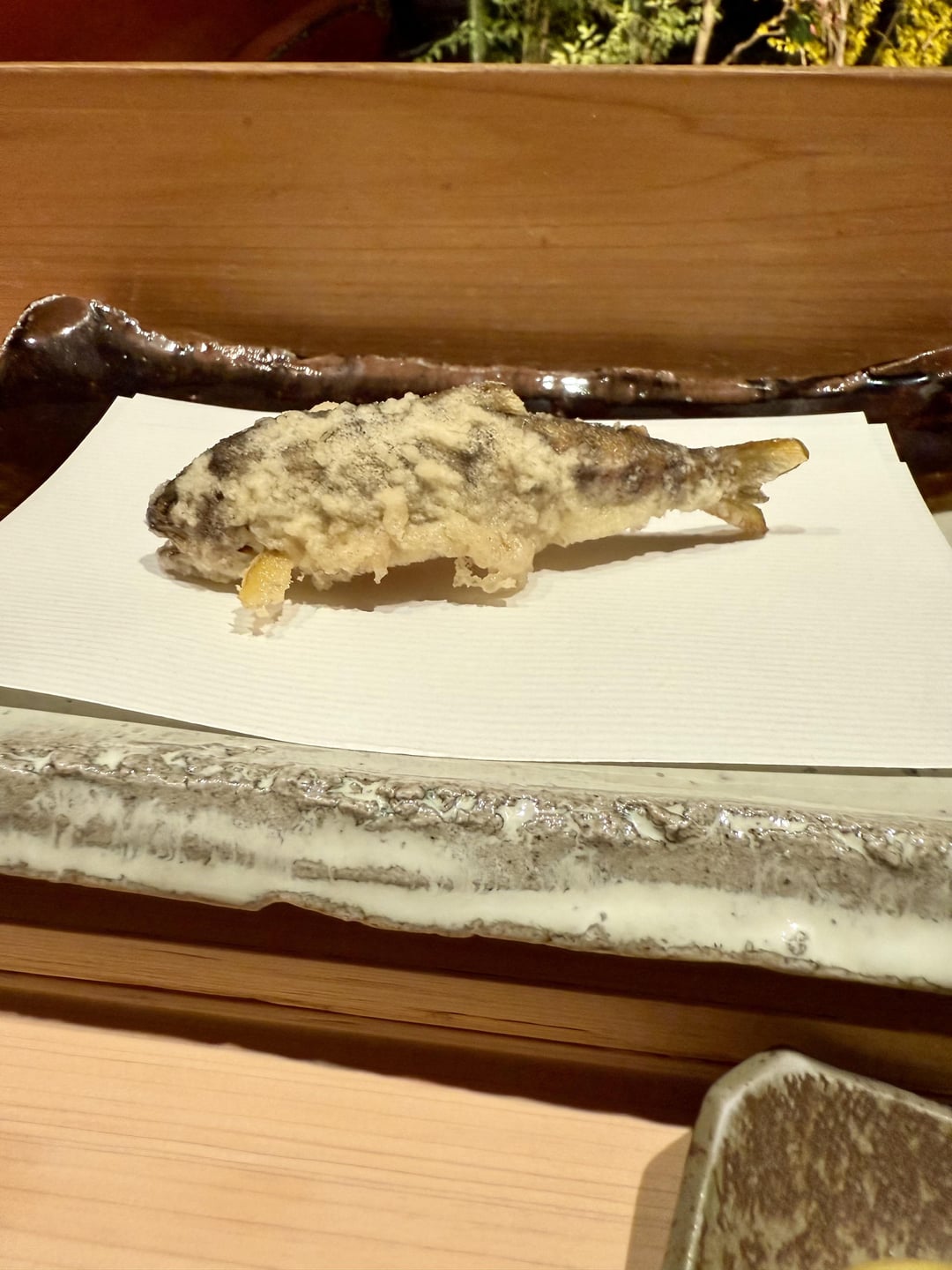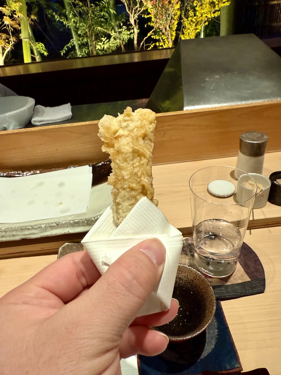 Tempura Uchitsu in Tokyo is an intimate 8 seat tempura restaurant. The picture window behind the chefs is absolutely stunning and makes you feel like you’re in nature. Service is great, chef is entertaining, he will delight you with conversation and will even pull out a map of Japan to show you where he resources his ingredients from. Chef would entertain me with the different temperatures and times at which he cooked the different ingredients, which I absolutely loved! The tempura is so light that even after having 15 different servings you didn’t even feel weighed down with oil. Compared to what tempura I have had in the states, one could probably eat this forever without having that feeling of greasy gut. Sake was flowing and paired well with the tempura! I would have to say my favorite bites were the Ayu and the squid. The squid was super thick but, at the same time was super tender!