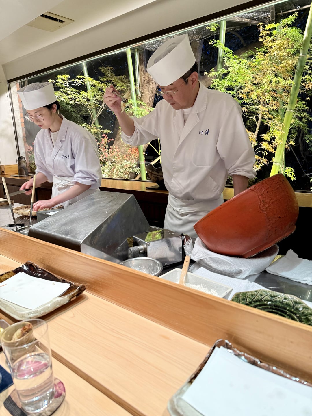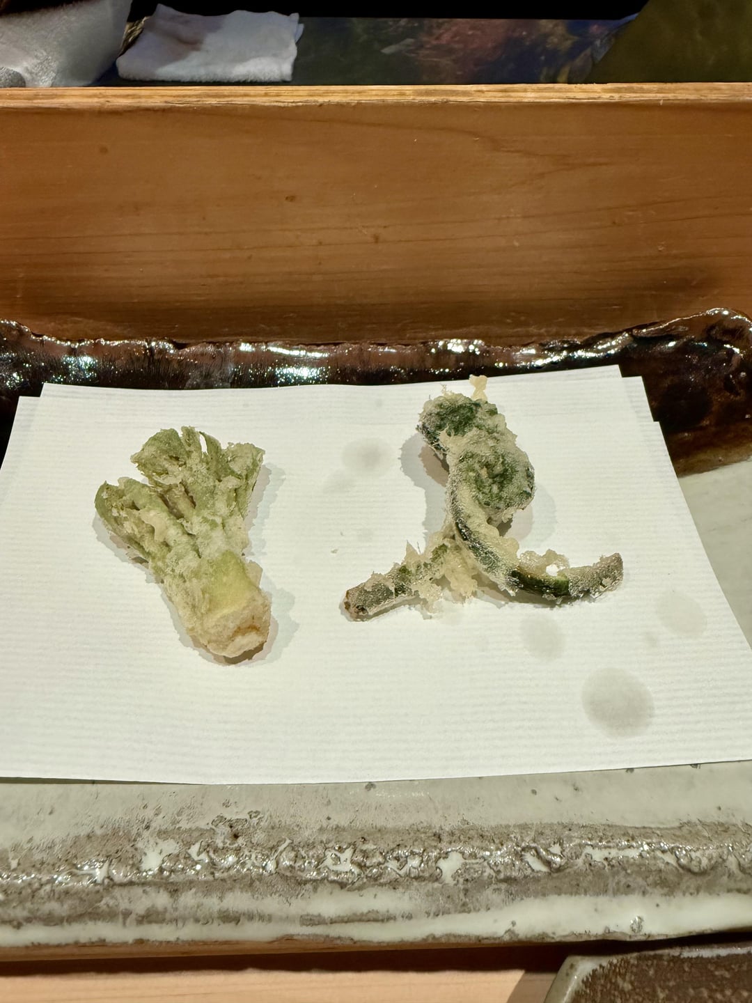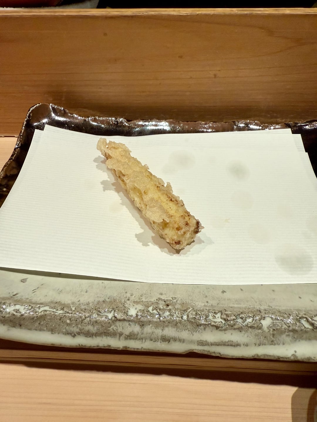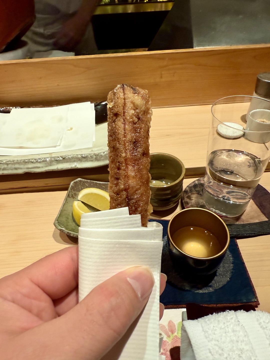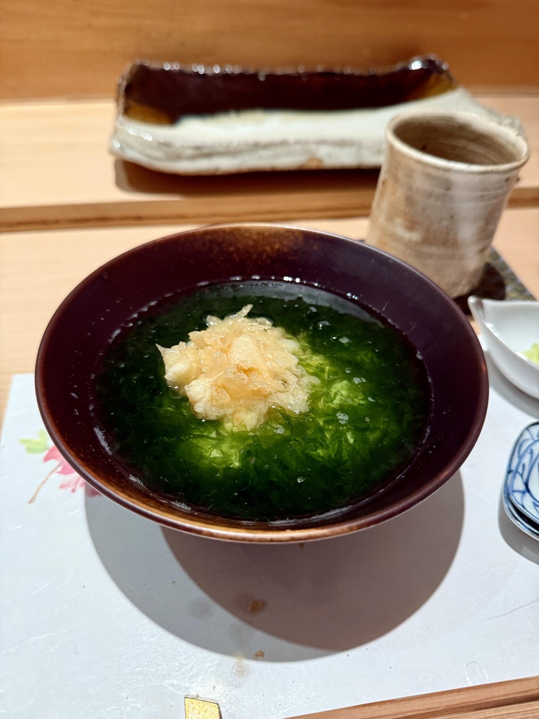 Tempura Uchitsu in Tokyo is an intimate 8 seat tempura restaurant. The picture window behind the chefs is absolutely stunning and makes you feel like you’re in nature. Service is great, chef is entertaining, he will delight you with conversation and will even pull out a map of Japan to show you where he resources his ingredients from. Chef would entertain me with the different temperatures and times at which he cooked the different ingredients, which I absolutely loved! The tempura is so light that even after having 15 different servings you didn’t even feel weighed down with oil. Compared to what tempura I have had in the states, one could probably eat this forever without having that feeling of greasy gut. Sake was flowing and paired well with the tempura! I would have to say my favorite bites were the Ayu and the squid. The squid was super thick but, at the same time was super tender!