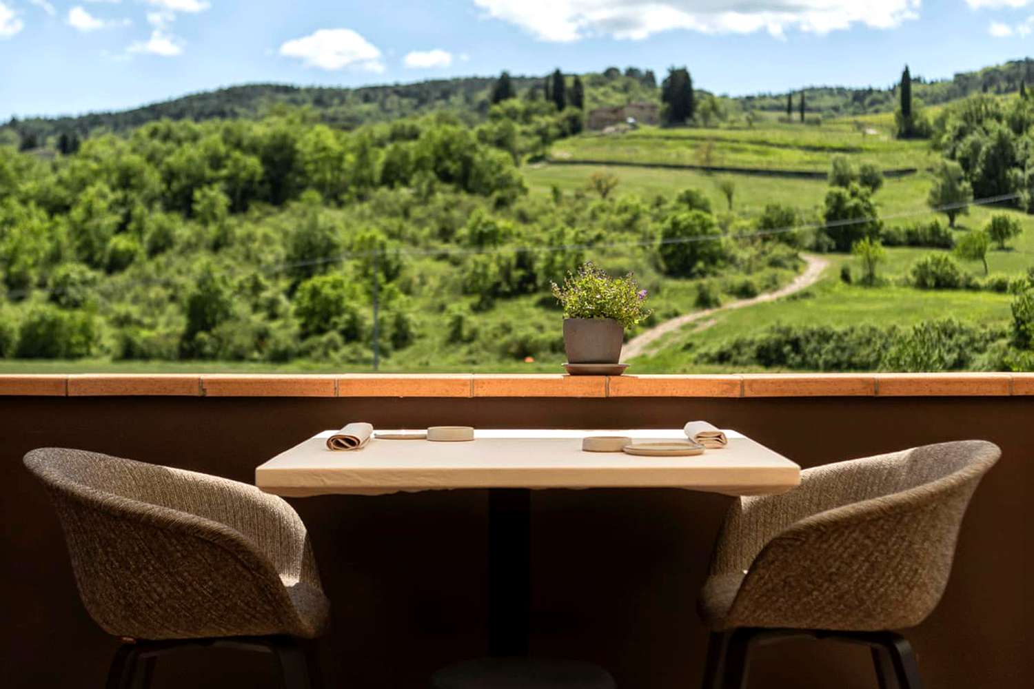Each morning the Locanda offers a rich breakfast with homemade cakes and, for lunch, a traditional Tuscan menu to accompany the estate’s different wines, such as Madrechiesa, an emblematic single-vineyard Sangiovese, or Balbinus, a savory, juicy Vermentino. At the entrance to the estate, right in the vineyards, is “Venus Anadyomene,” a sculpture by Emiliano Maggi in wrought iron and glazed ceramic, which offers a sort of dreamlike portal to welcome visitors.