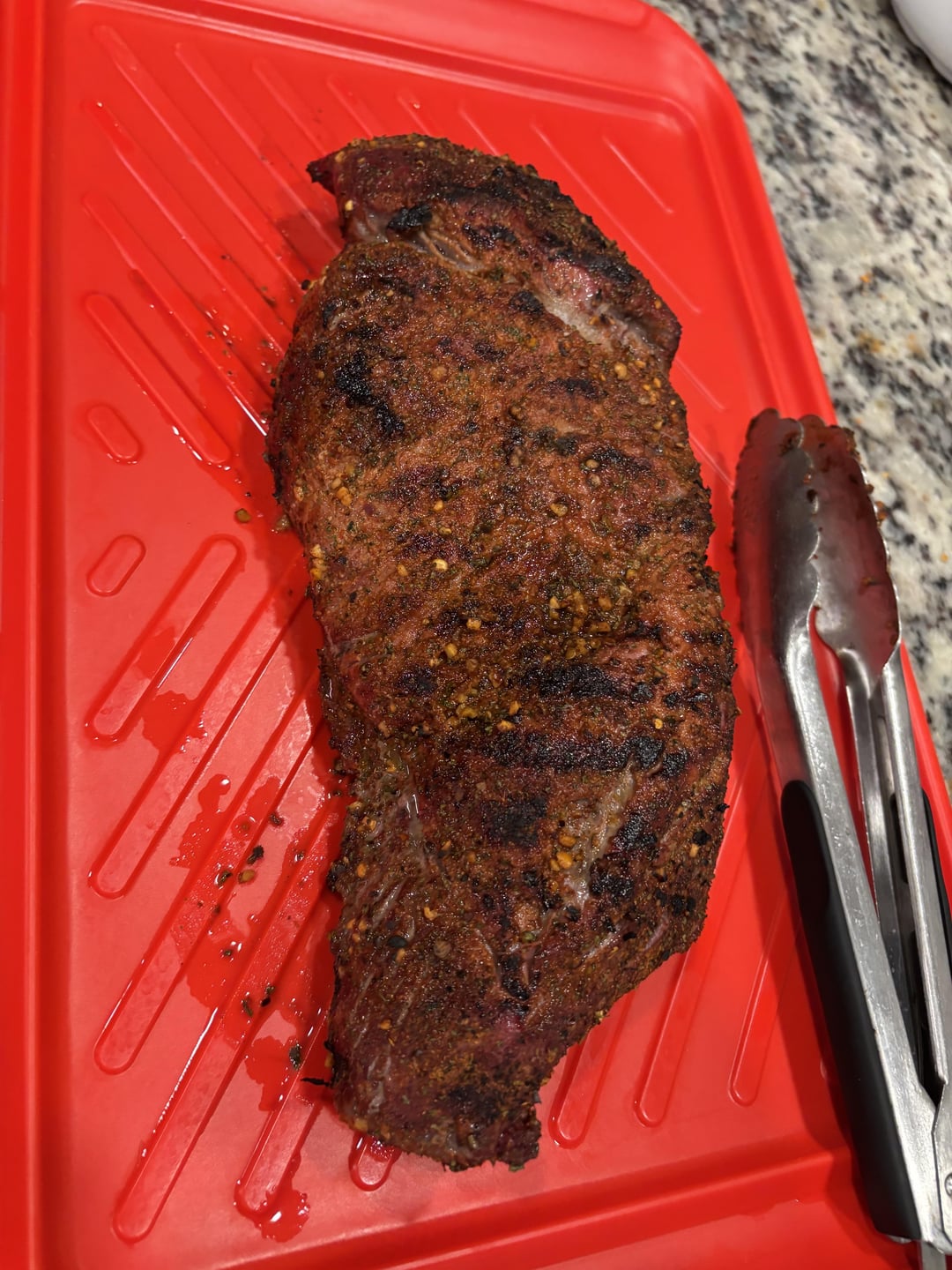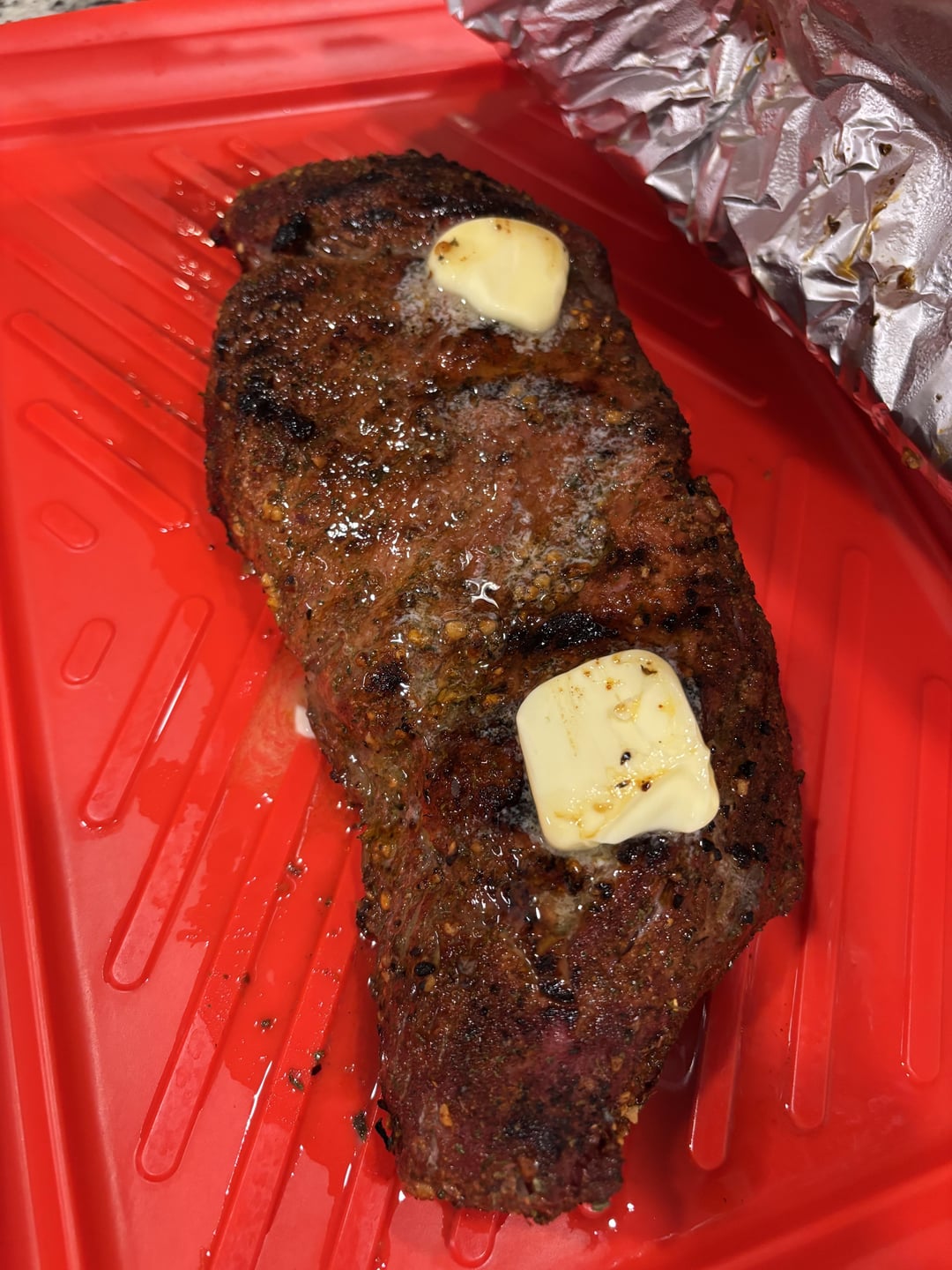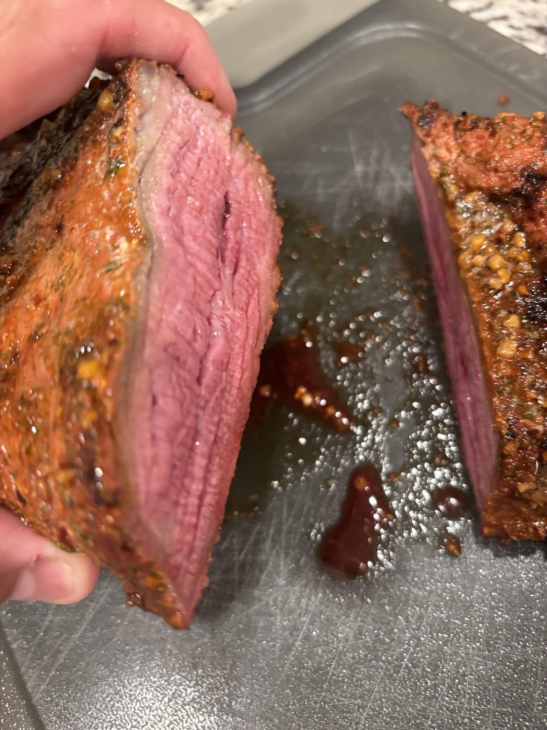 Used the Meat Church reverse sear method. 225 until it hit 115, I let it rest then seared it for 2 mins on each broad side and 1 min on the edges on my gas grill at 550 to 600 deg.