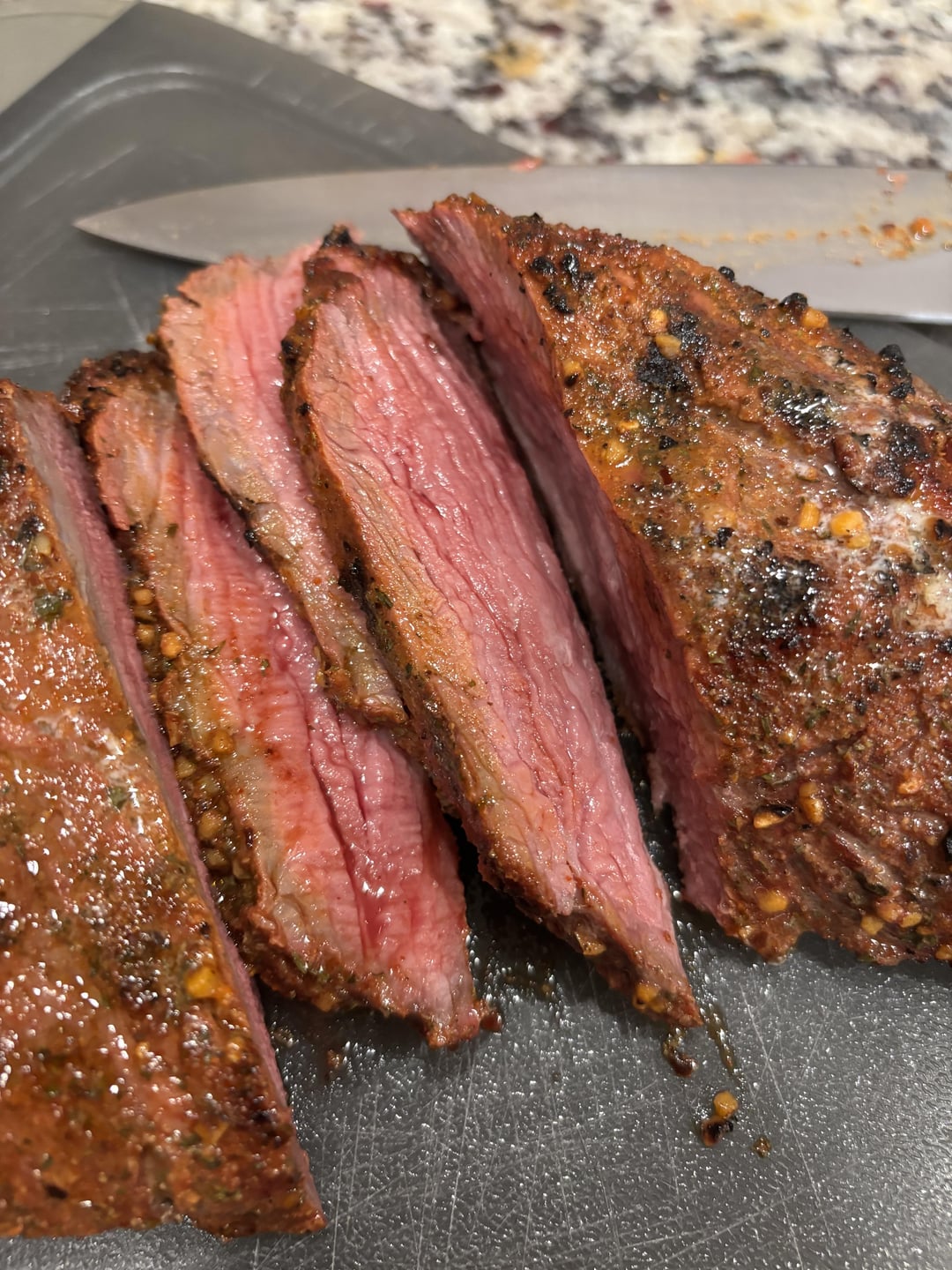 It was amazing, I accidentally cut with the grain for these pics, as it was my first time dealing with this cut of meat. Next time I will definitely use a cast iron skillet, I just didn’t want to smoke up the house on a weeknight.