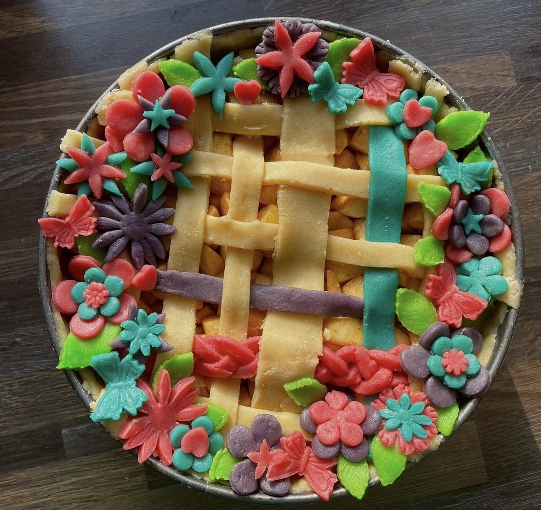 GreatRecipeCollctr29 8 months ago What kind of food dye did you use? By the way, that’s a beautiful pie. My first thought is fruity pebbles pie but it’s an apple pie.