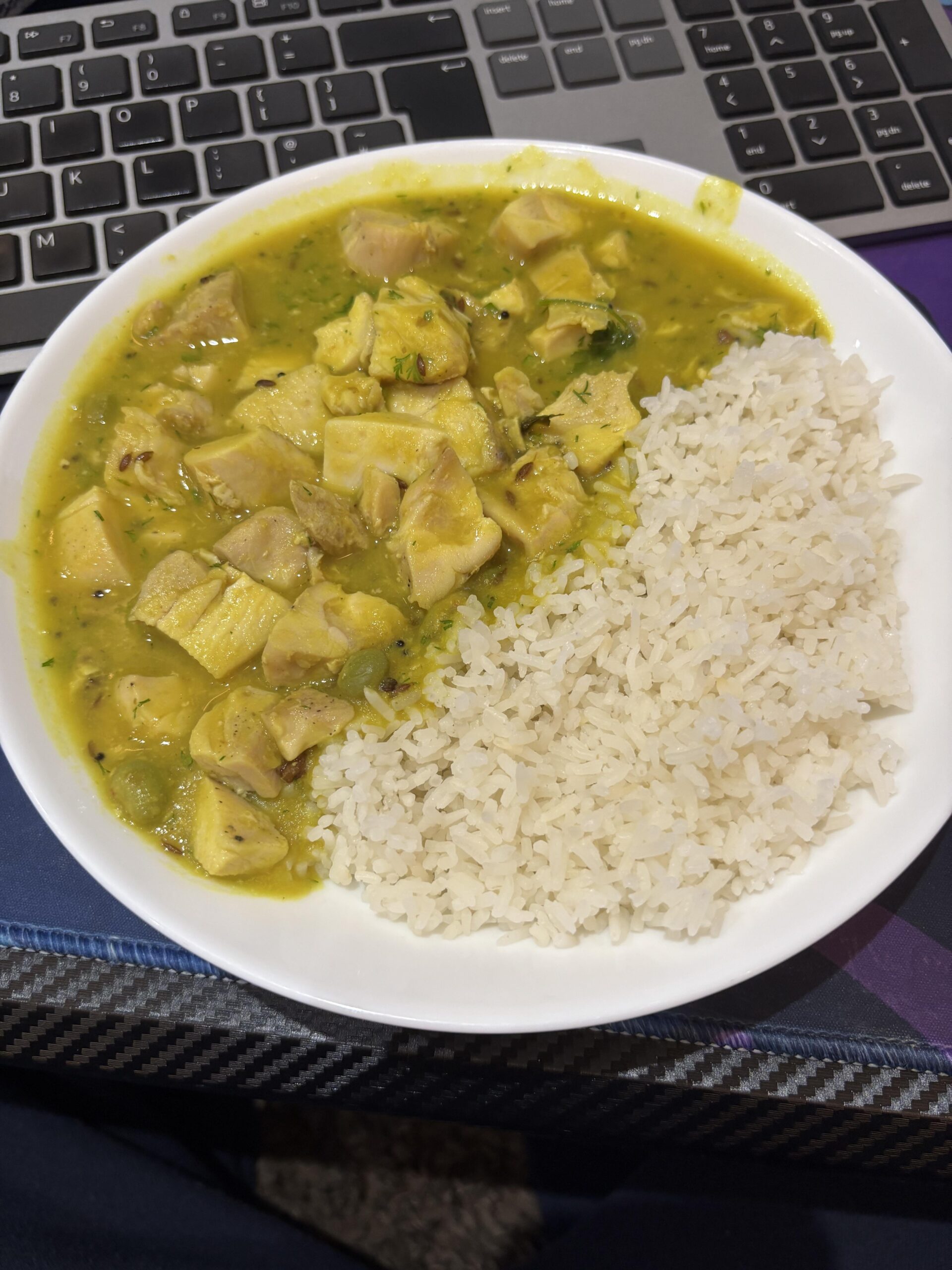 Chicken thighs from frozen that was 1 percent salted, in the sous vide 66 degrees, 4 hours, cooled and left over night in the fridge. So I’m Indian and my mum makes Dhal all the time the one she made recently was really good because it was really spicy and had this amazing kick to it so I thought I would add chicken for the extra protein. And my god it was good. I took the chicken out the bag and cut it up with the chicken fat jelly. Mixed it all in and it was incredible. Soft chicken with a bit of chew that also absorbed some of the sauce. It was in the dhal for about five minutes whilst being heated up and it was so good!