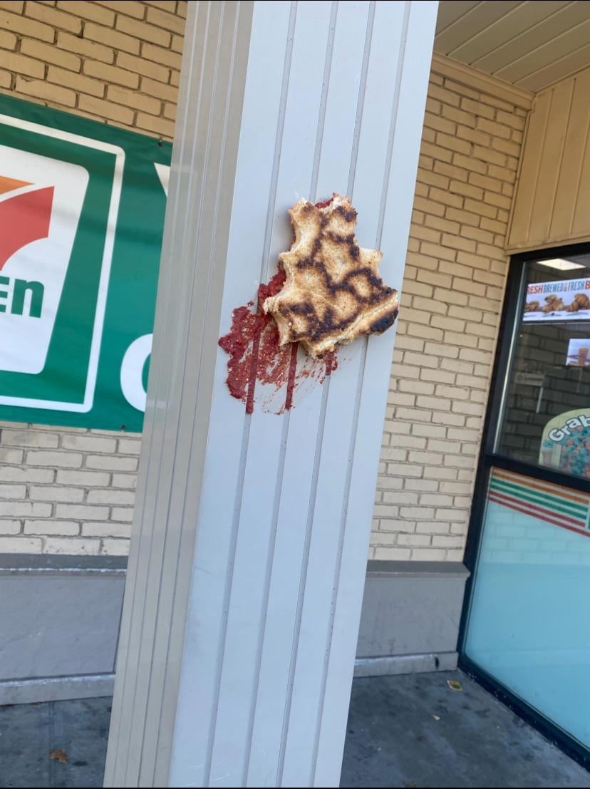 This is so sad it’s smooshed then shmeared on that pillar like a roach from their bathrooms 🙁